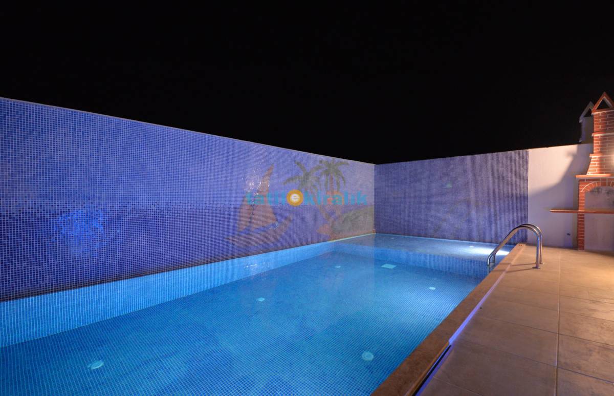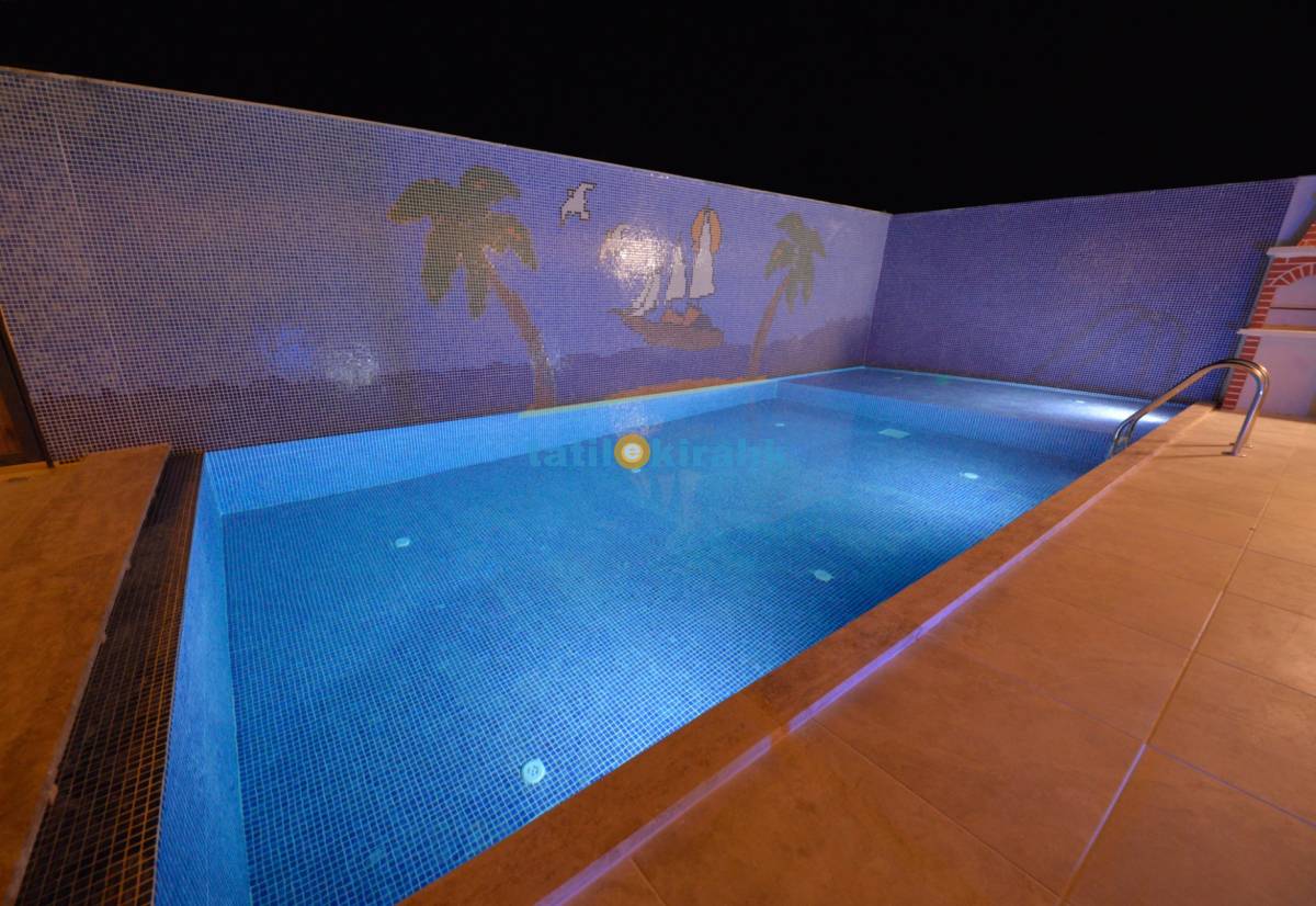 Havuz Terası Detayları: Özel yüzme havuzu, şezlong, şemsiye,salıncak langırt ve barbekü bulunmaktadır.
