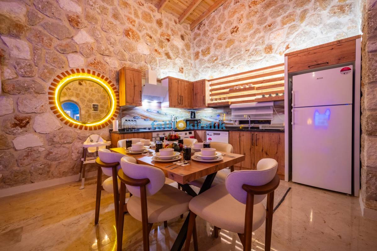 Mutfak Detayları : Buzdolabı, bulaşık makinesi, fırın, mikrodalga, tost makinesi çamaşır makinesi, yemek takımı, tava-tencere, çatal-bıçak seti bulunmaktadır.
