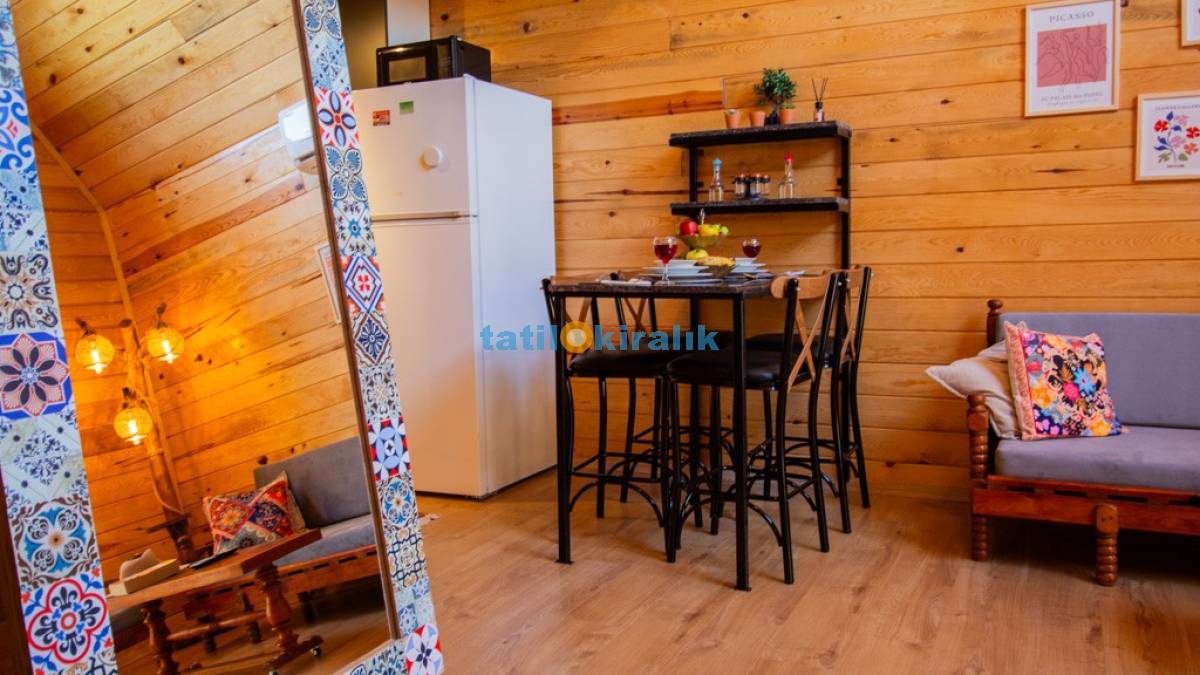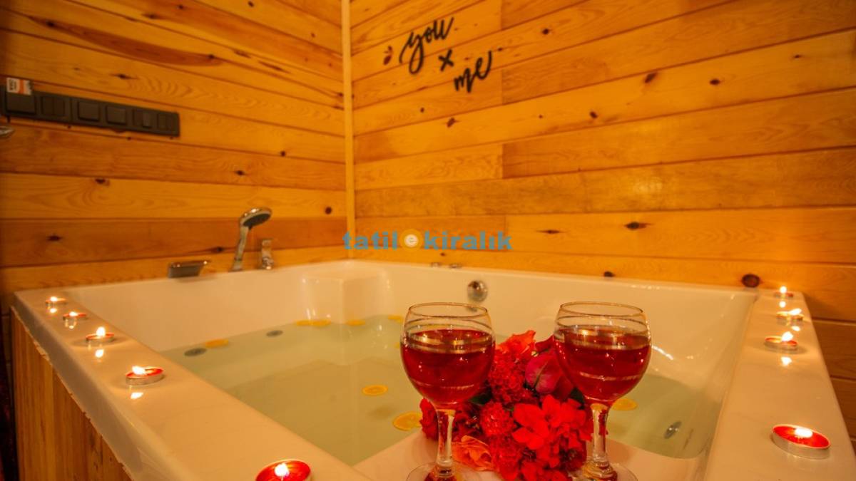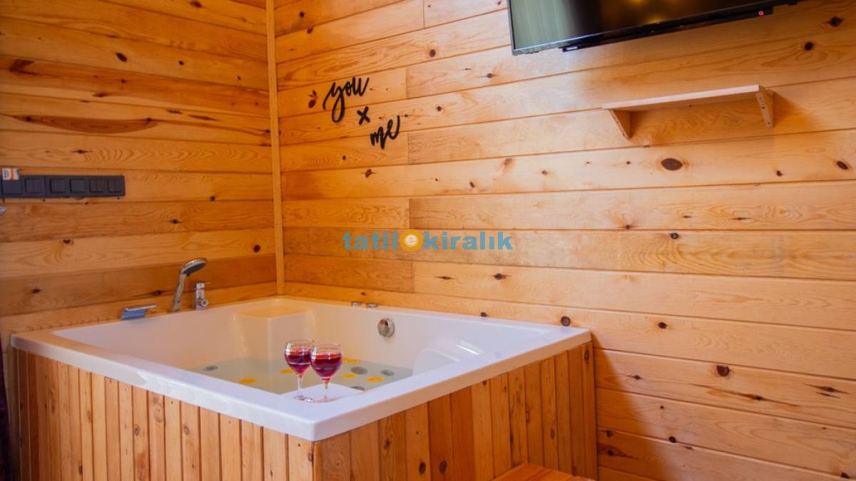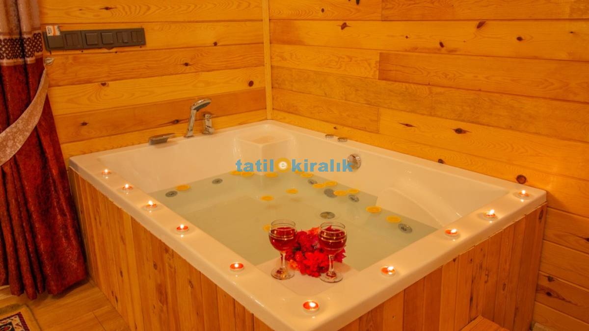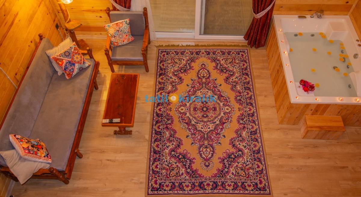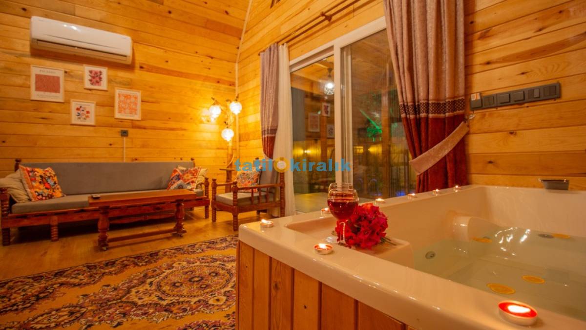 Salon Detayları: TV, oturma grubu, yemek masası, klima, jakuzi bulunmaktadır.