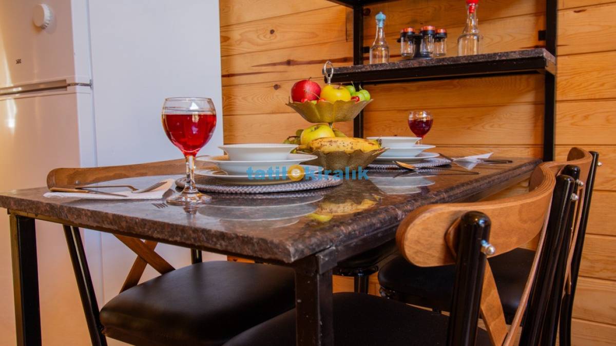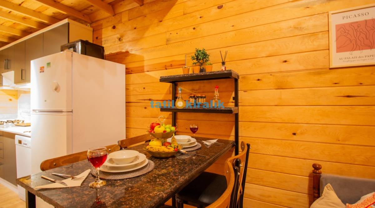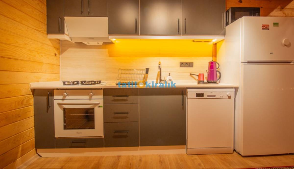 Mutfak Detayları: Buzdolabı, bulaşık makinesi, fırın, tost makinesi çamaşır makinesi, yemek takımı, tava-tencere, çatal-bıçak seti bulunmaktadır.