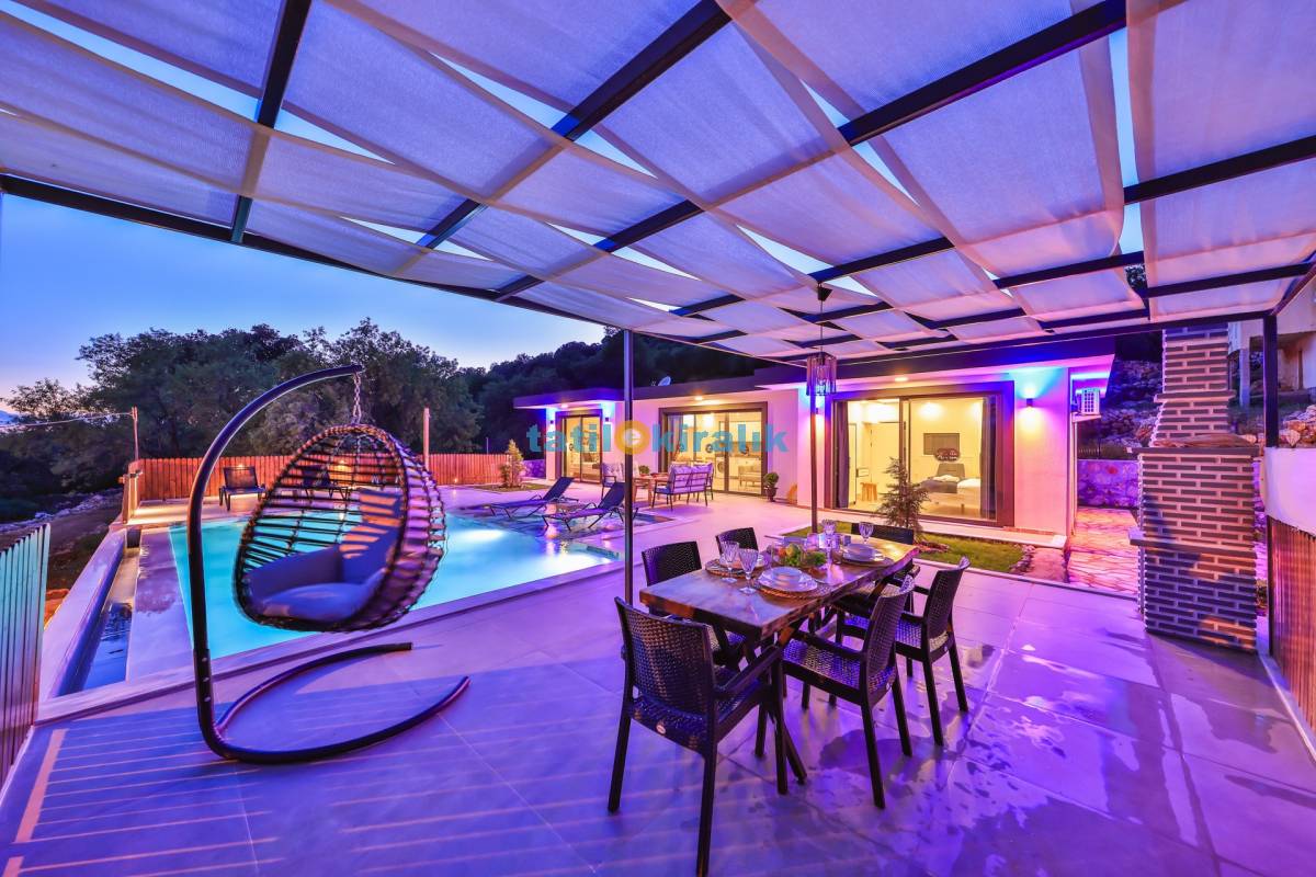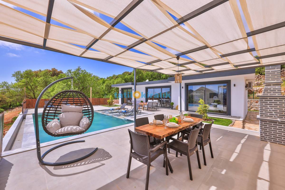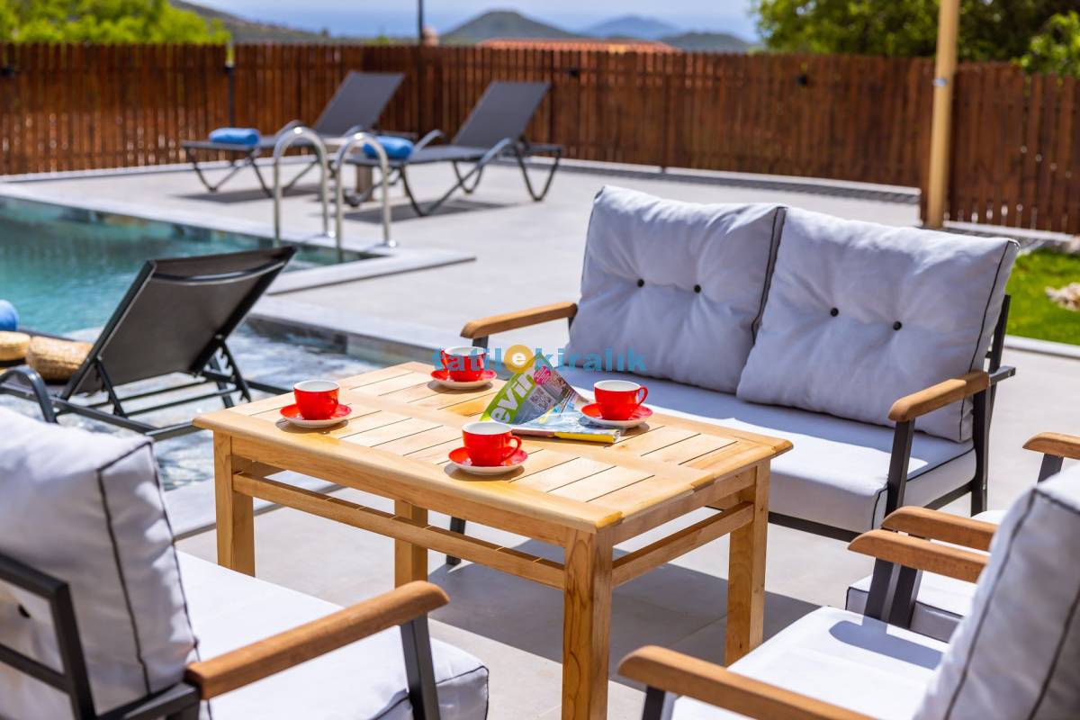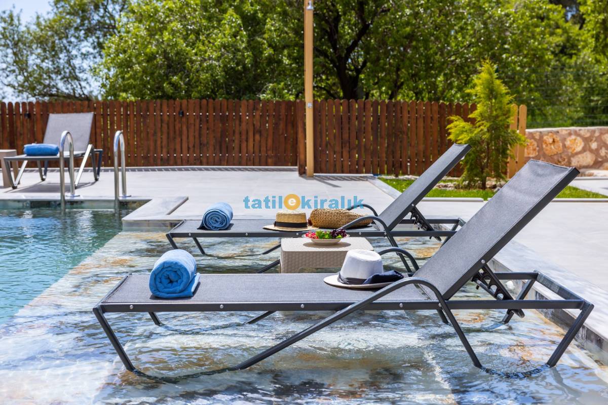 Havuz Terası Detayları : Şezlong , güneşlenme şemsiyesi ,salıncak , barbekü , yemek masası ve sandalyeleri bulunmaktadır.