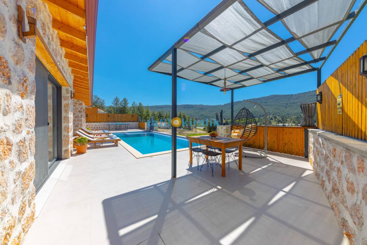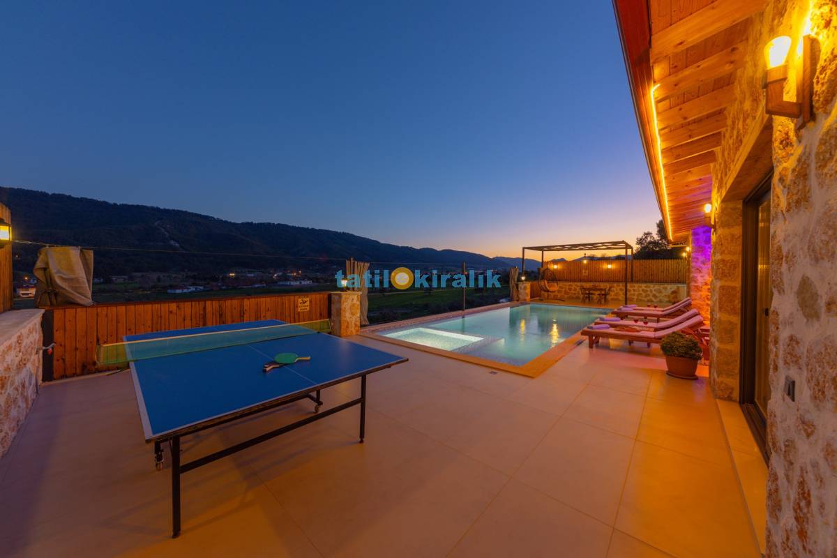 Havuz Terası Detayları : Şezlonglar, barbekü, yemek masası, salıncak, oturma grubu, langırt, masa tenisi bulunmaktadır.