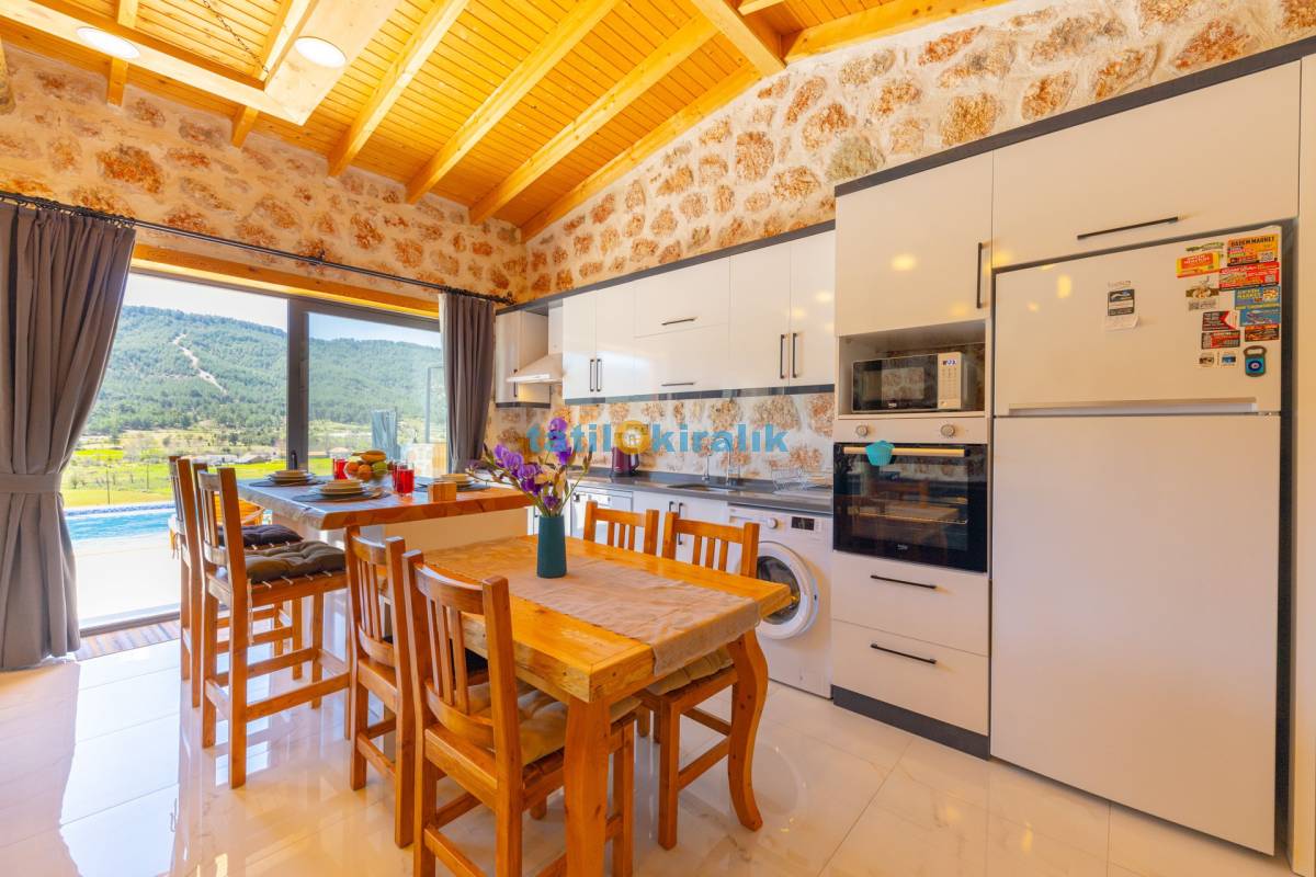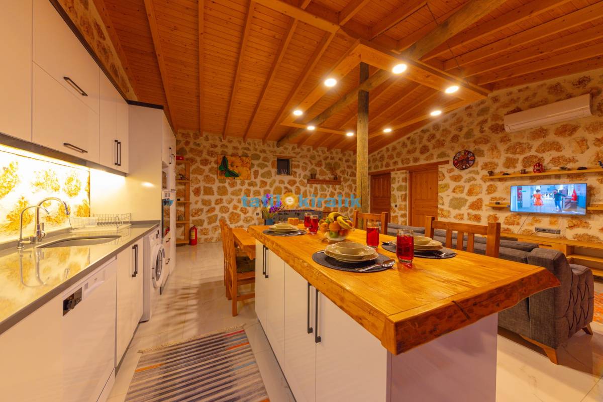 Mutfak Detayları:  Buzdolabı, bulaşık makinesi,  fırın, mikrodalga, tost makinesi çamaşır makinesi, yemek takımı, tava-tencere, çatal-bıçak seti bulunmaktadır.