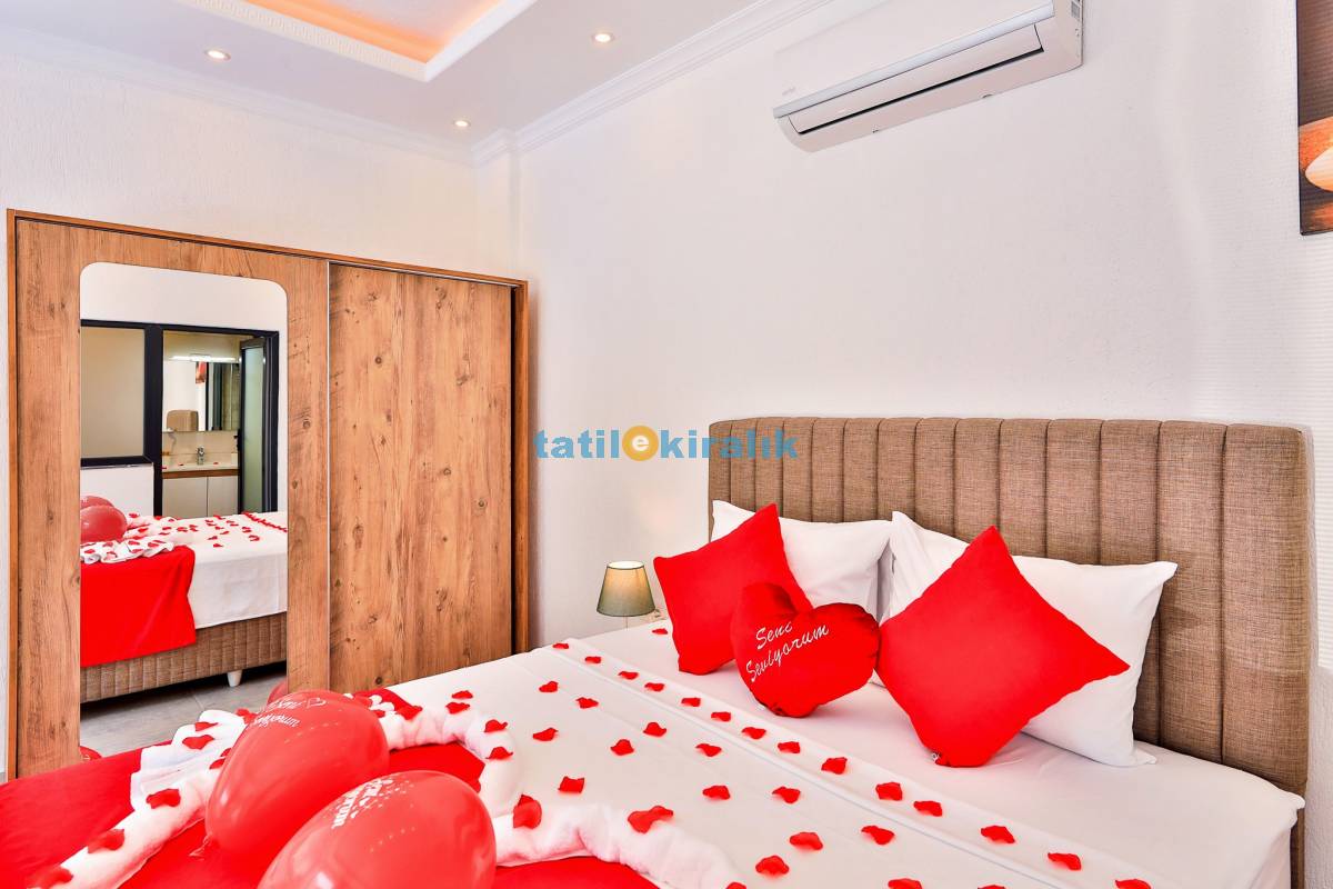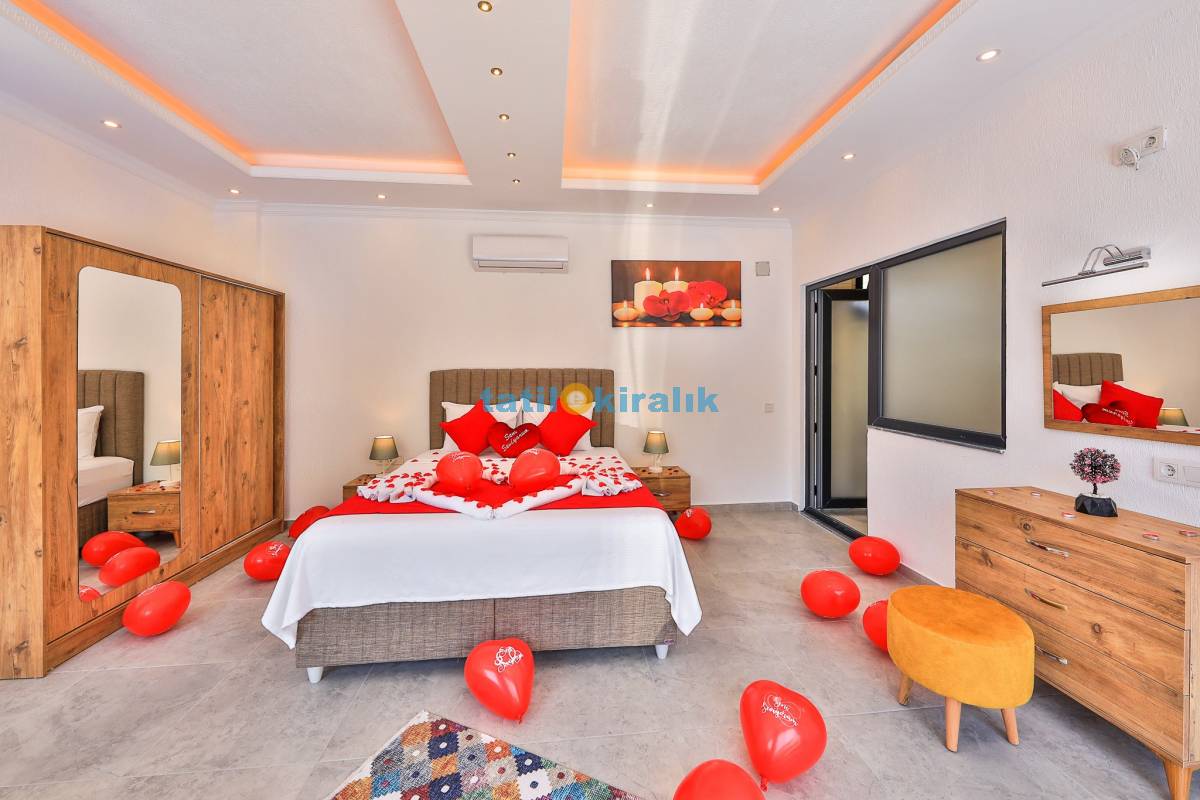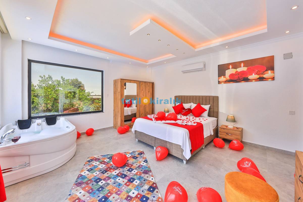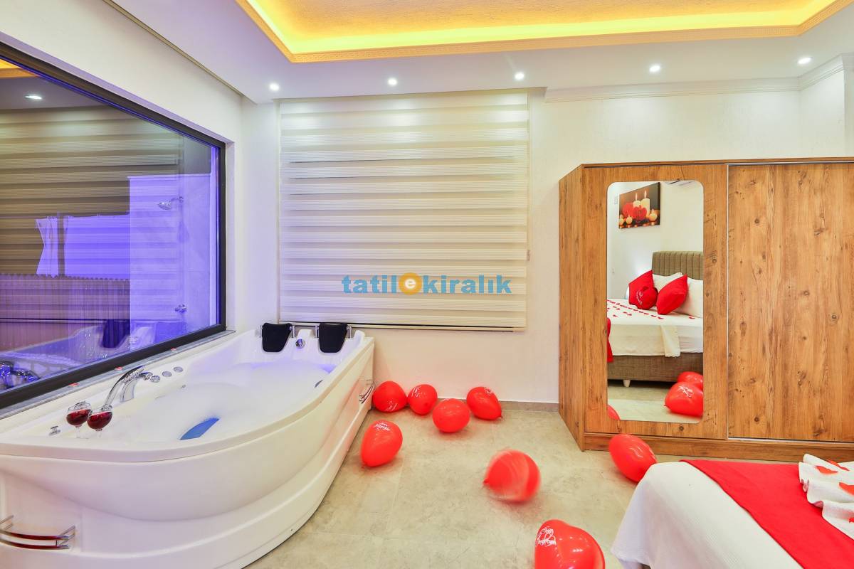 Detayları : Bir adet çift kişilik yatak ,klima, jakuzi, komodin, makyaj masası, park yatak, elbise dolabı ve ebeveyn banyosu bulunmaktadır.