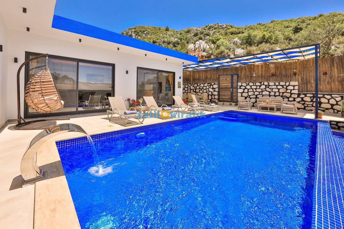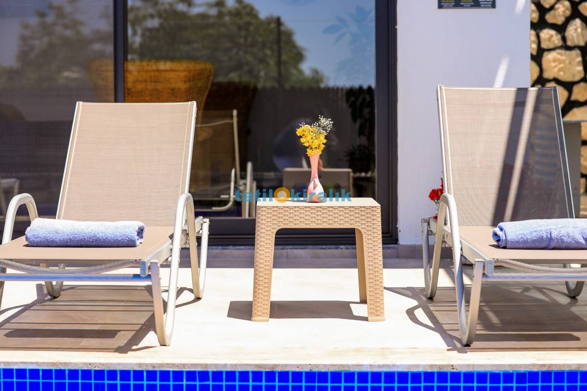 Havuz Terası Detayları : Şezlonglar, barbekü, yemek masası, salıncak, oturma grubu, bulunmaktadır.