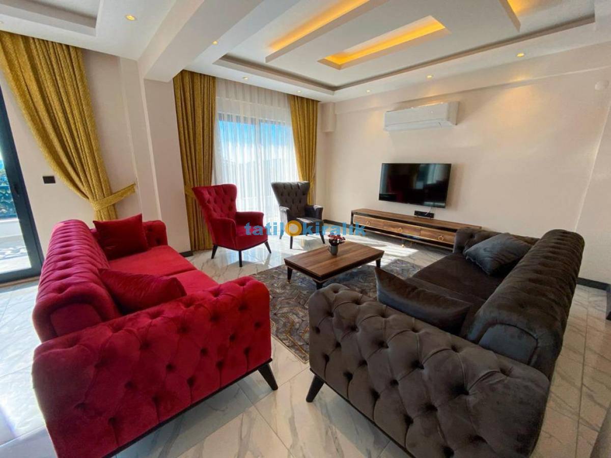 Salon Detayları: Oturma Grubu, Smart TV, Kablosuz İnternet, Klima, Yemek Masası, Havuz Terasına Çıkış