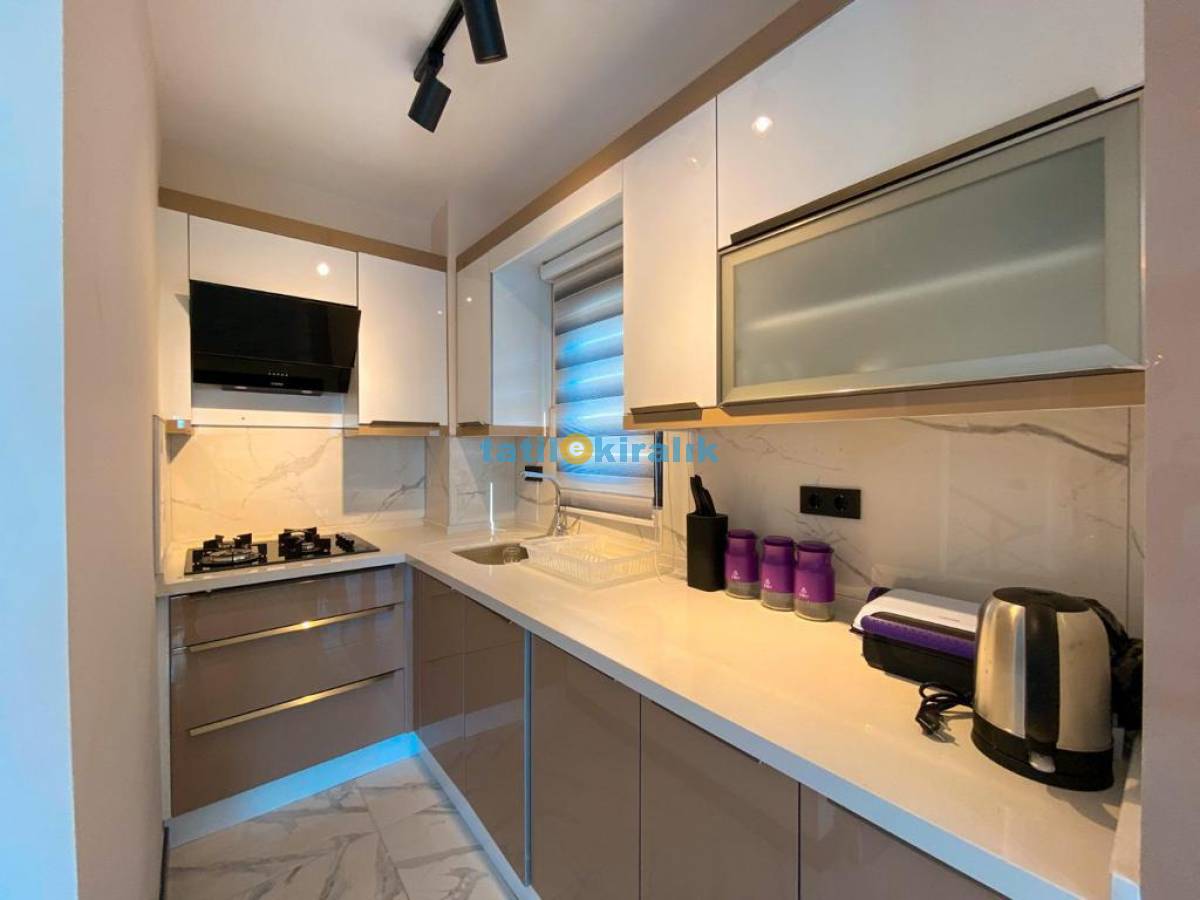 Mutfak Detayları: Buzdolabı, Bulaşık Makinesi, Çamaşır Makinesi, Fırın, 4’lü Ocak (ankastre), Elektrikli Su Isıtıcı, tost makinesi, mikro dalga fırın, Tava & Tencere vb. Mutfak Ekipmanları, 8 Kişilik Yemek Takımı