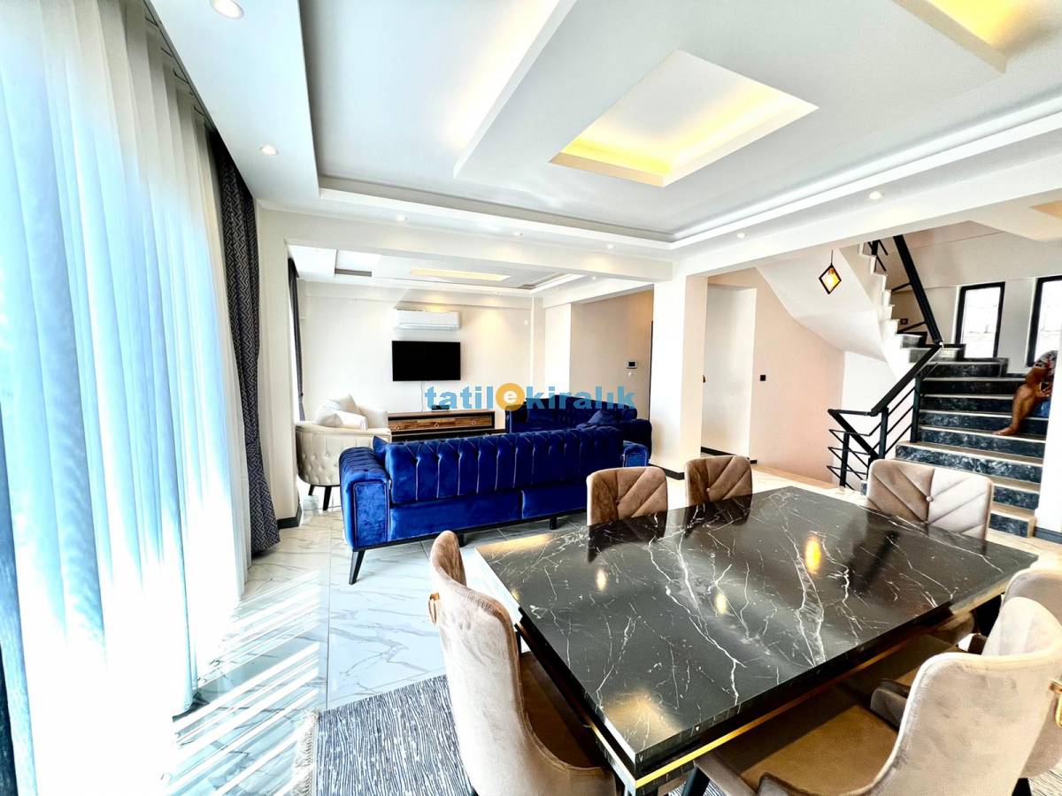 Salon Detayları: Oturma Grubu, Smart TV, Kablosuz İnternet, Klima, Yemek Masası, Havuz Terasına Çıkış