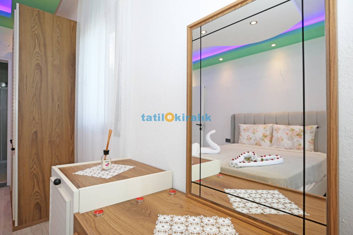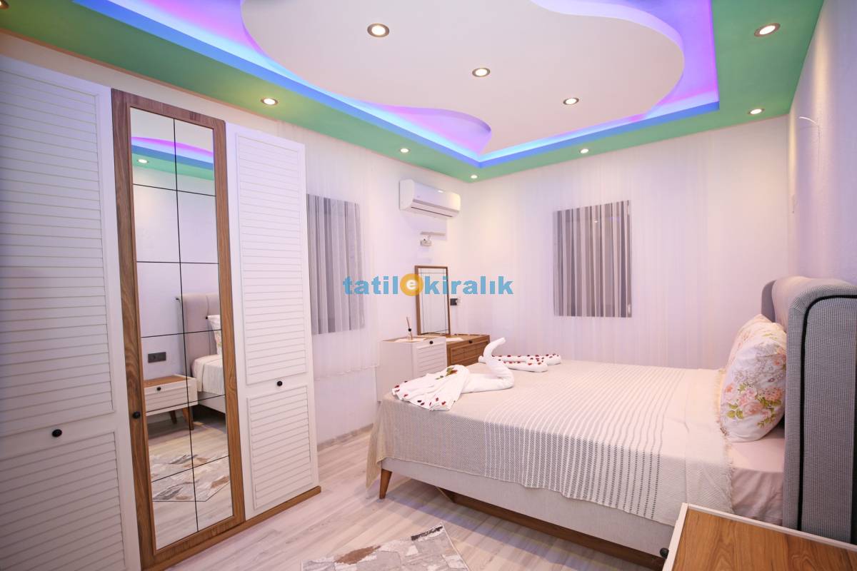 Detayları : Çift Kişilik Yatak, Klima, makyaj masası, elbise dolabı , jakuzi, TV, banyo/ WC bulunmaktadır.