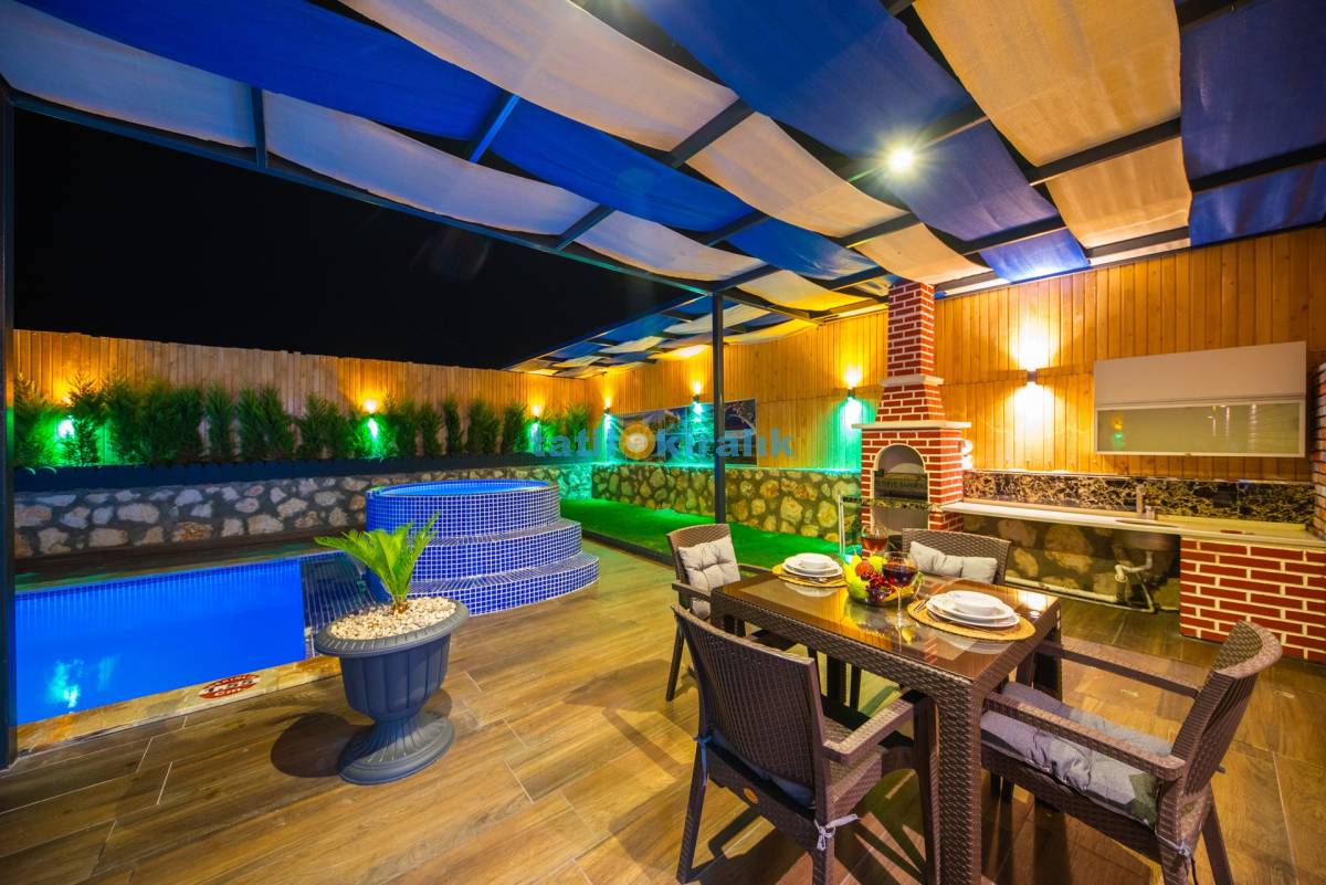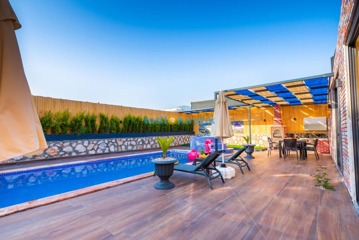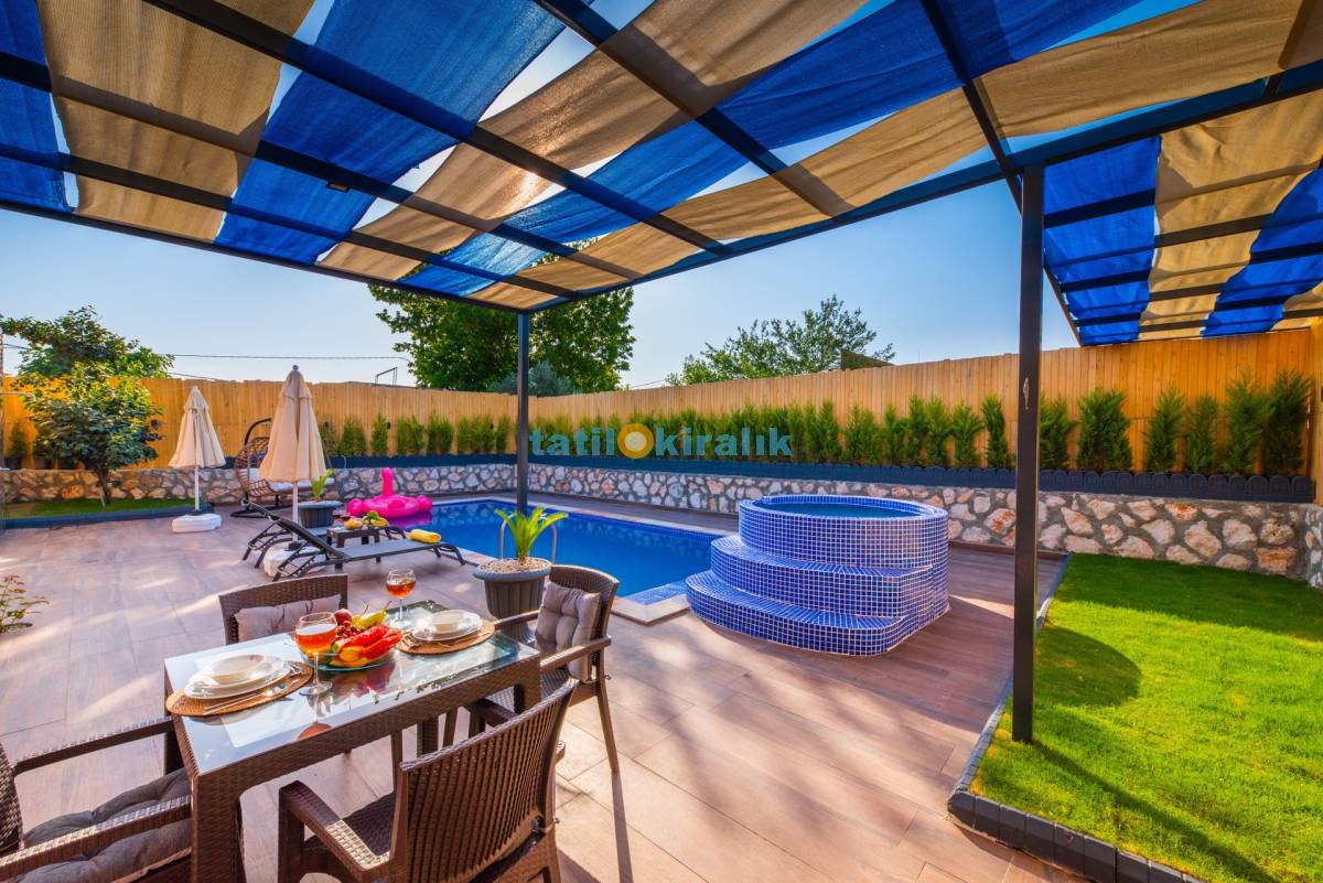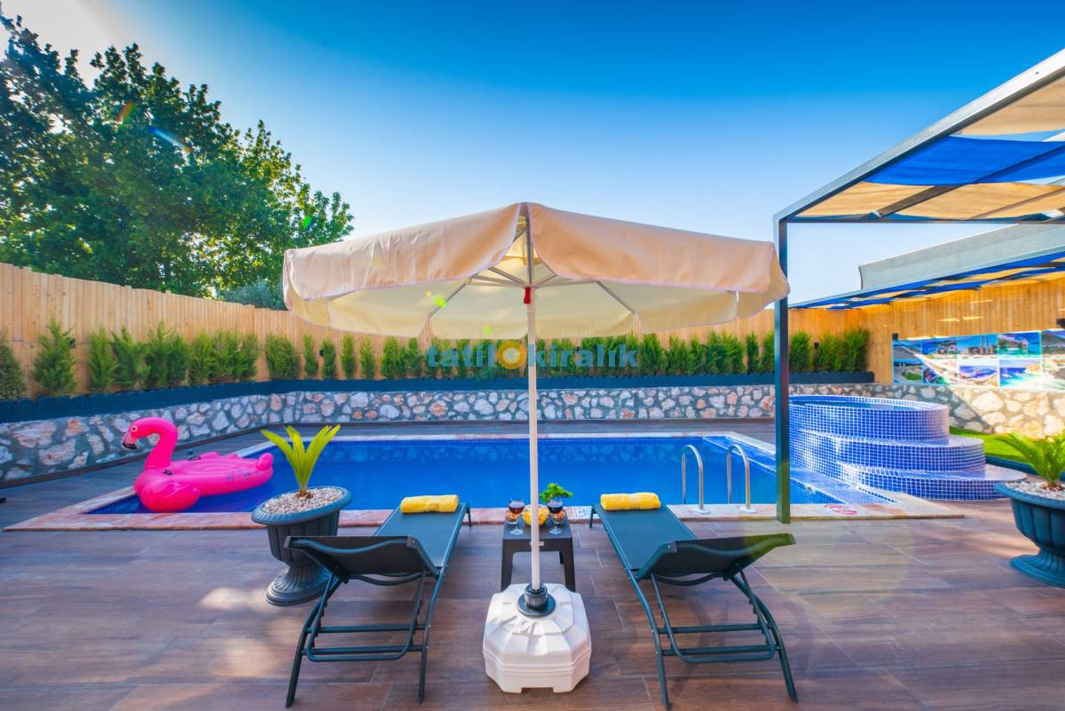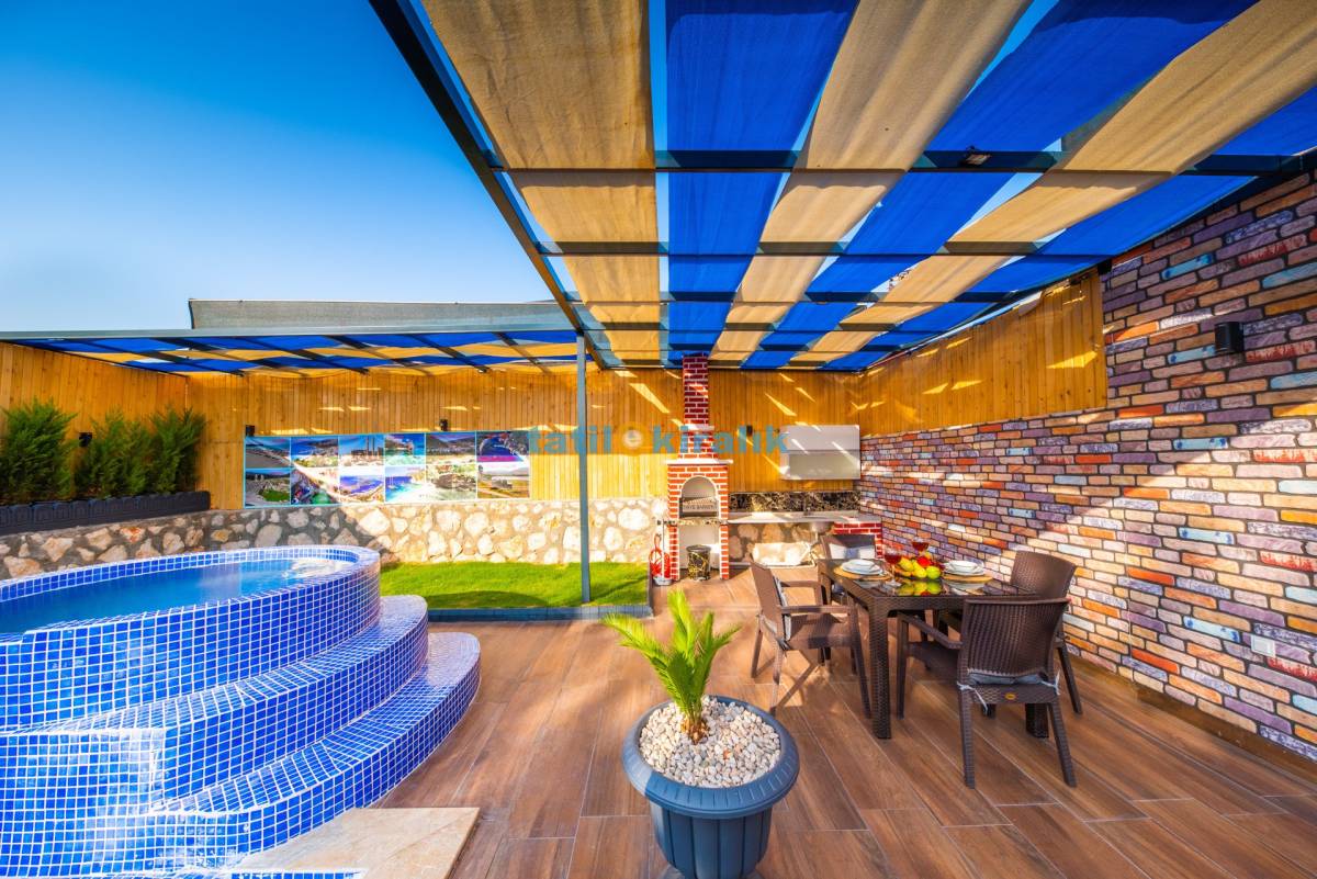 Havuz Terası Detayları : Şezlong , güneşlenme şemsiyesi , barbekü, yemek masası ve sandalyeleri bulunmaktadır.