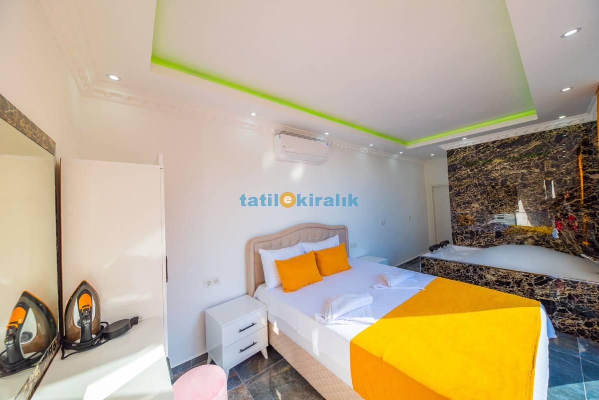 Detayları : Çift kişilik yatak , jakuzi , klima ,komodin , elbise dolabı , makyaj masası, banyo ve lavabo bulunmaktadır.