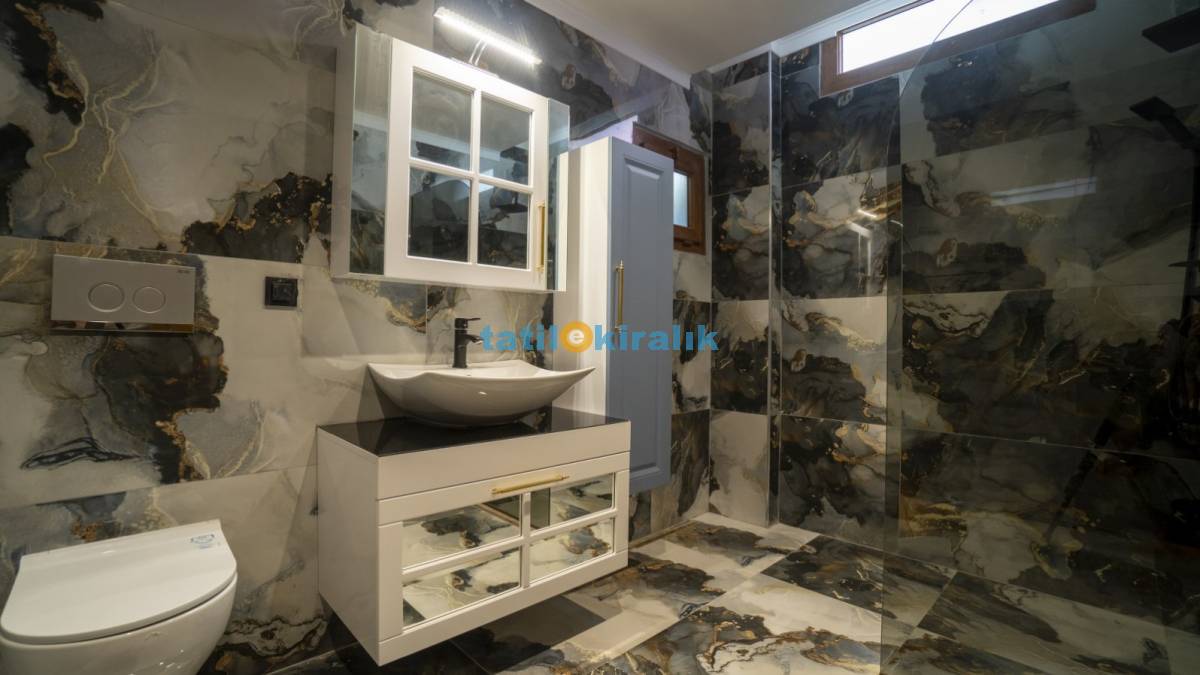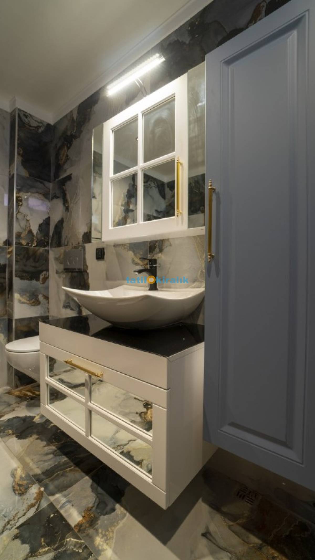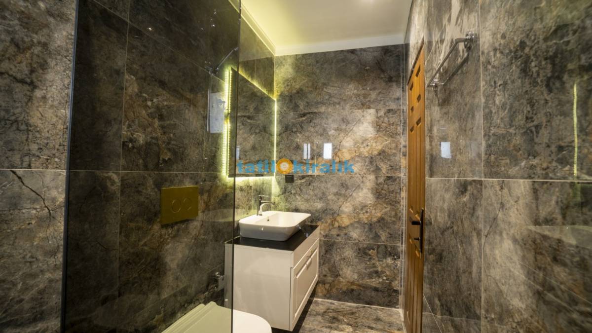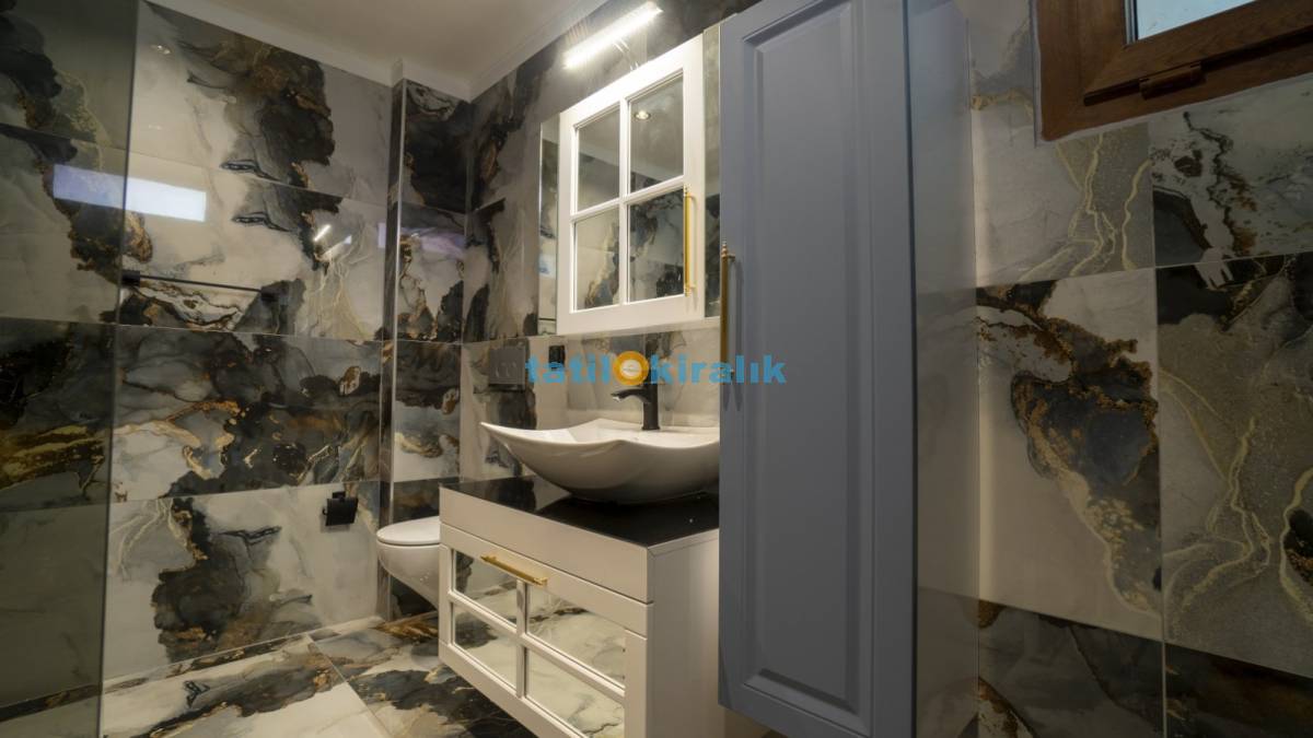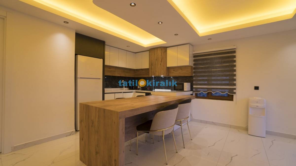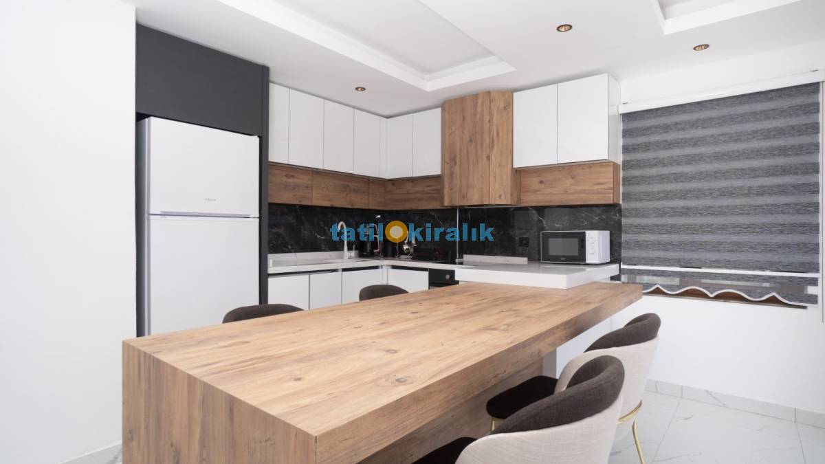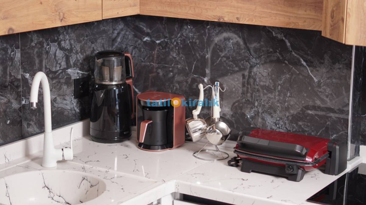 Mutfak Detayları : Buzdolabı , bulaşık makinesi , çamaşır makinesi , mikro dalga , yemek takımı , tava-tencere, çatal-bıçak seti bulunmaktadır.