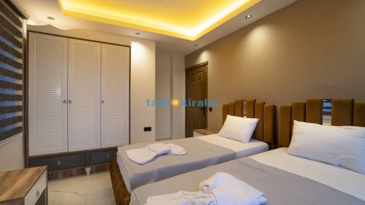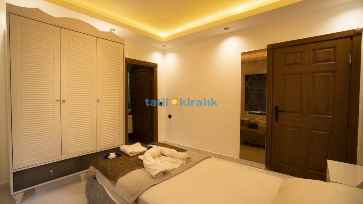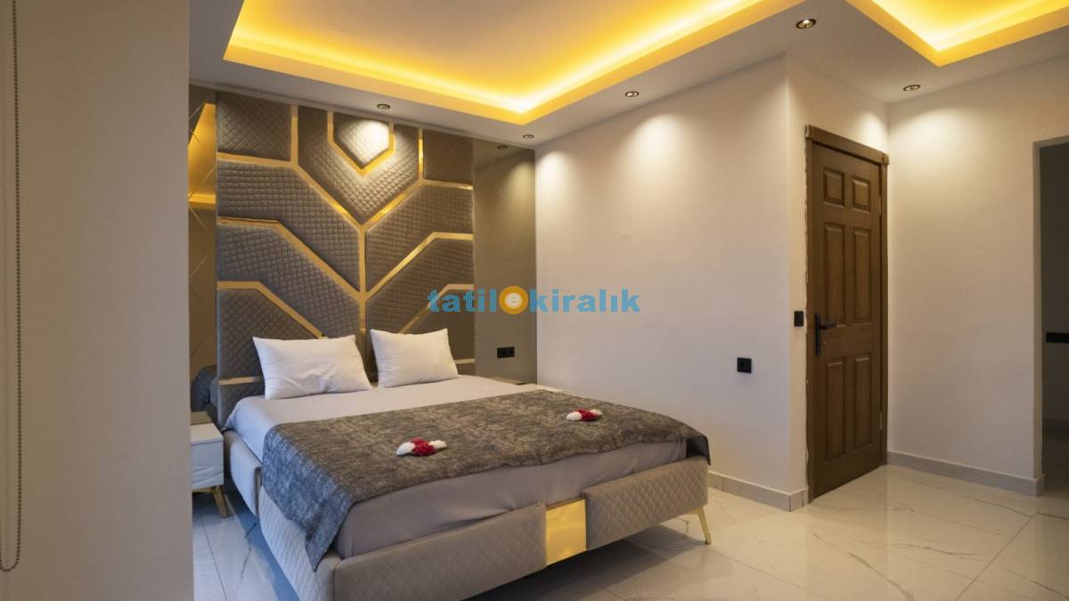 Detayları : Çift Kişilik Yatak, Banyo/WC, Komodin, Elbise dolabı, Makyaj Masası, Klima Bulunmaktadır.