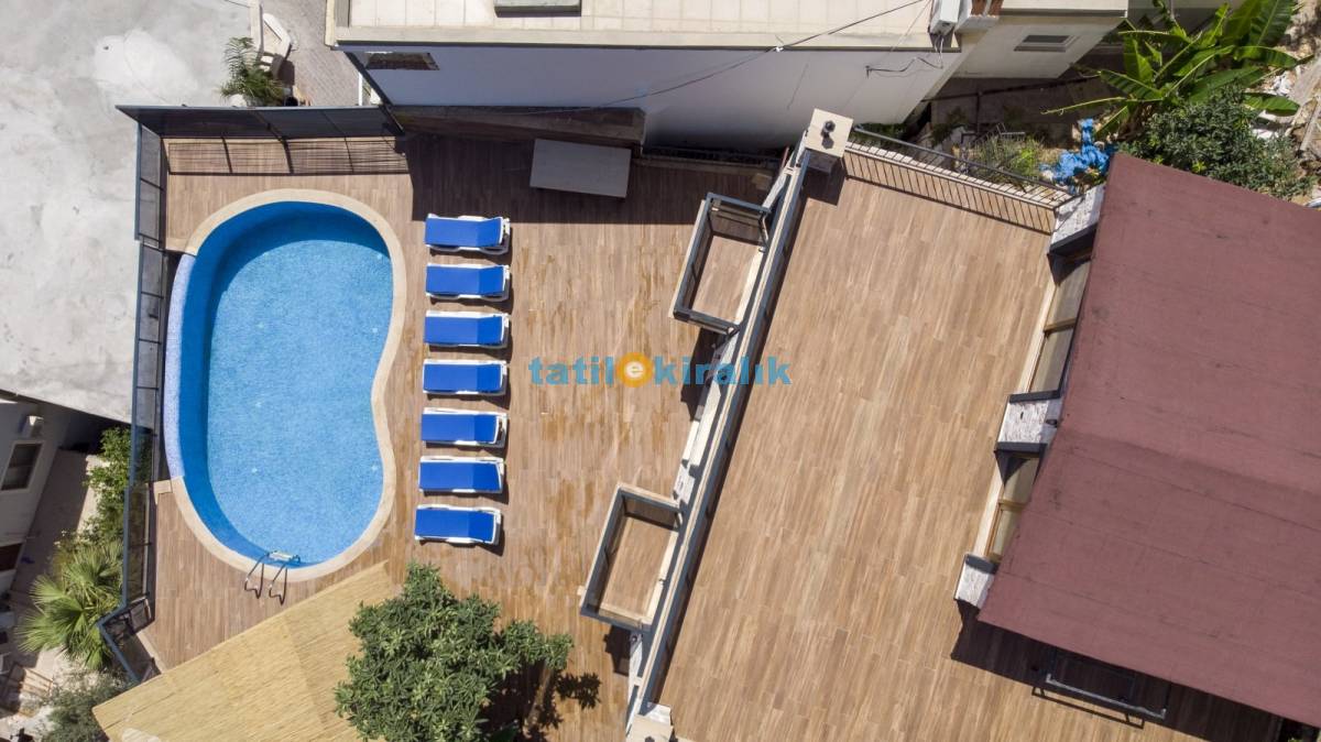 Havuz Terası Detayları : Şezlong , güneşlenme şemsiyesi , barbekü , yemek masası ve sandalyeleri bulunmaktadır.