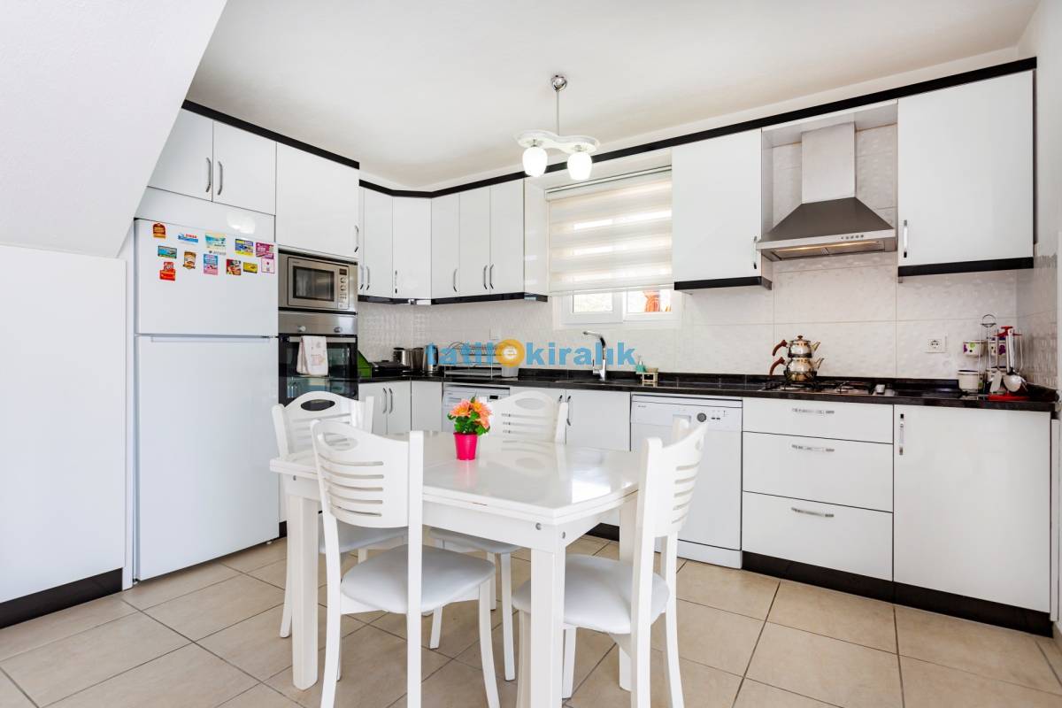 Mutfak Detayları : Buzdolabı , bulaşık makinesi , kahve makinası , çamaşır makinesi ,yemek masası ve sandalyeler , 4 kişilik yemek takımı , tava-tencere, çatal-bıçak seti bulunmaktadır.