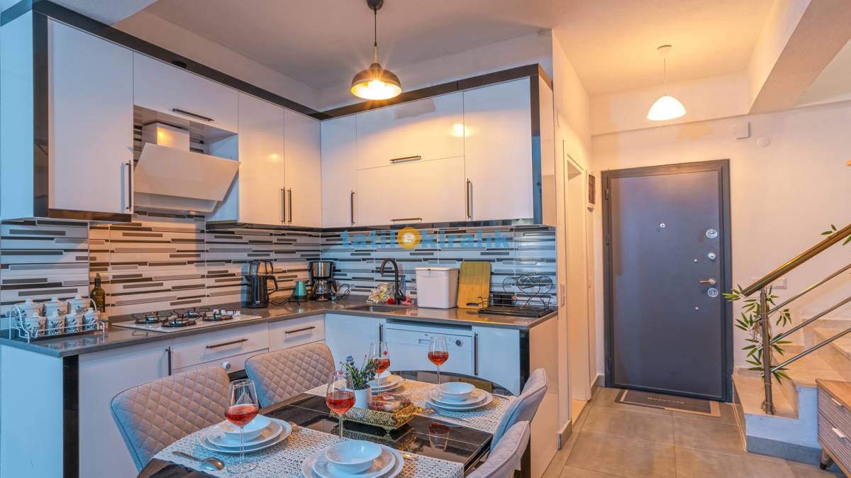 Mutfak Detayları:  Buzdolabı, bulaşık makinesi, fırın, çamaşır makinesi, yemek takımı, tava-tencere, çatal-bıçak seti bulunmaktadır.