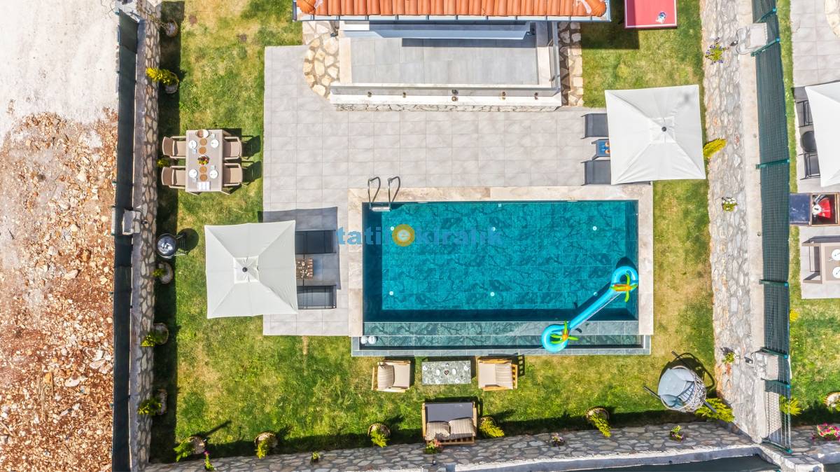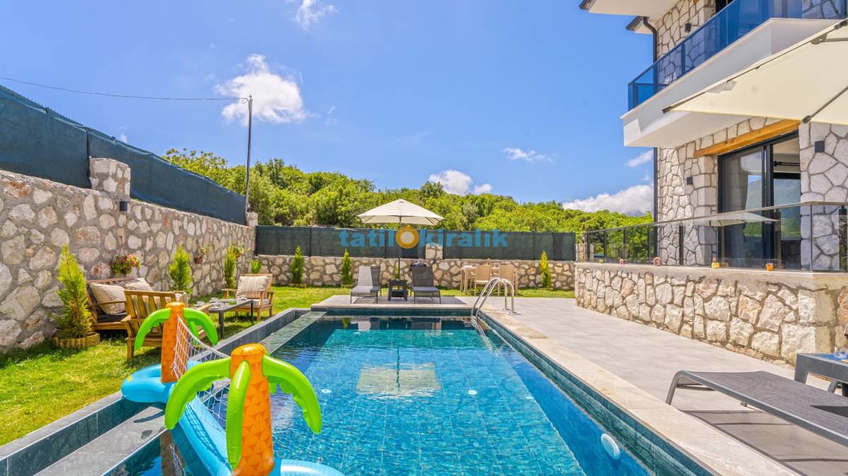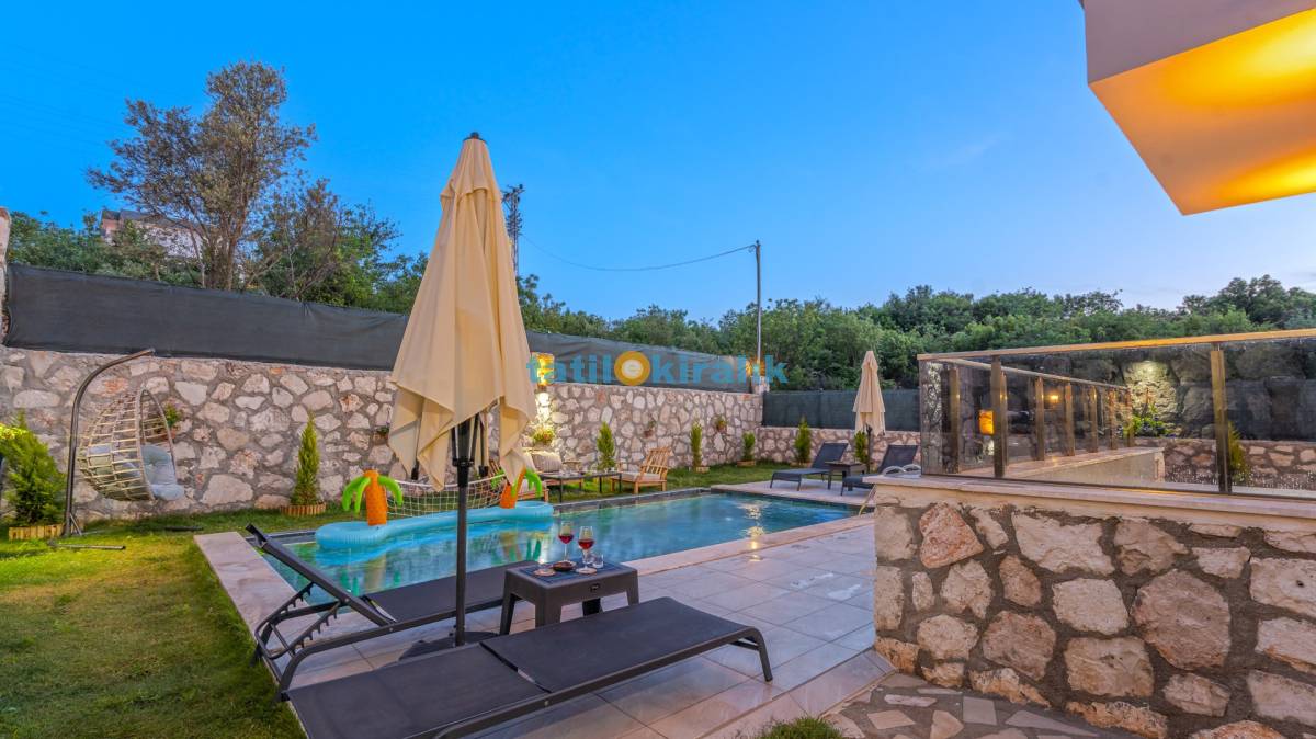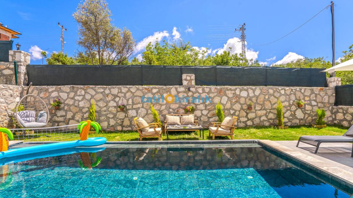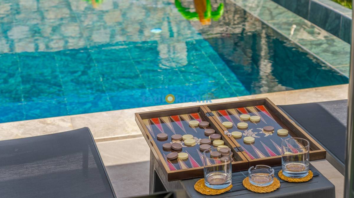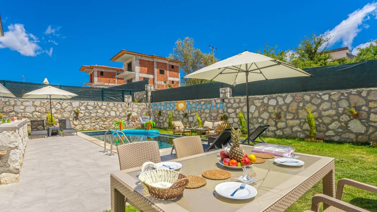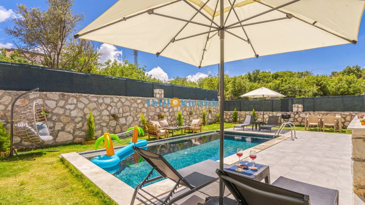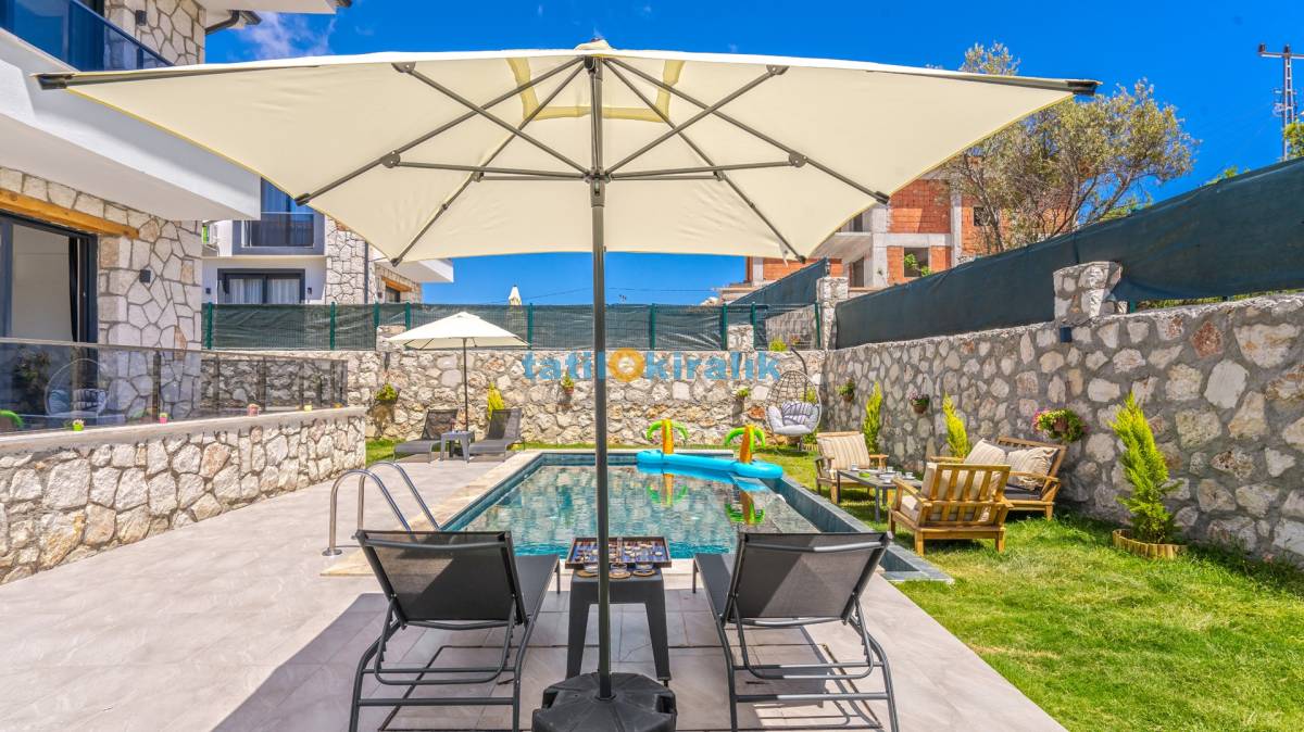 Havuz Terası Detayları : Şezlong, güneşlenme şemsiyesi, barbekü, salıncak, masa tenisi,  yemek masası ve sandalyeleri bulunmaktadır.