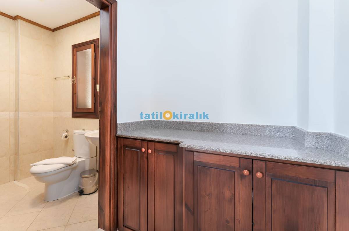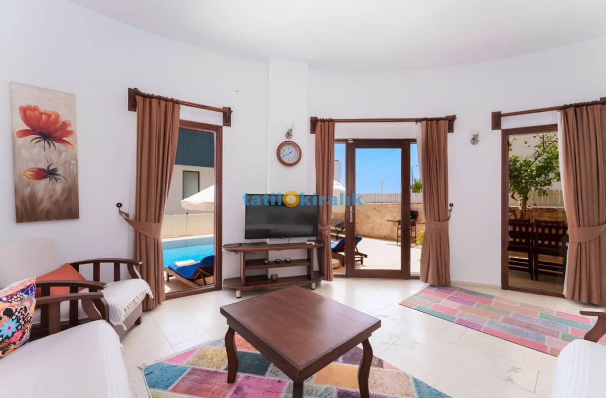 Salon Detayları : Oturma grubu , televizyon , uydu alıcı , klima , yemek masası , sandalyeler , ütü , ütü masası , lavabo bulunmaktadır. Havuz başına doğrudan çıkış sağlanmaktadır.