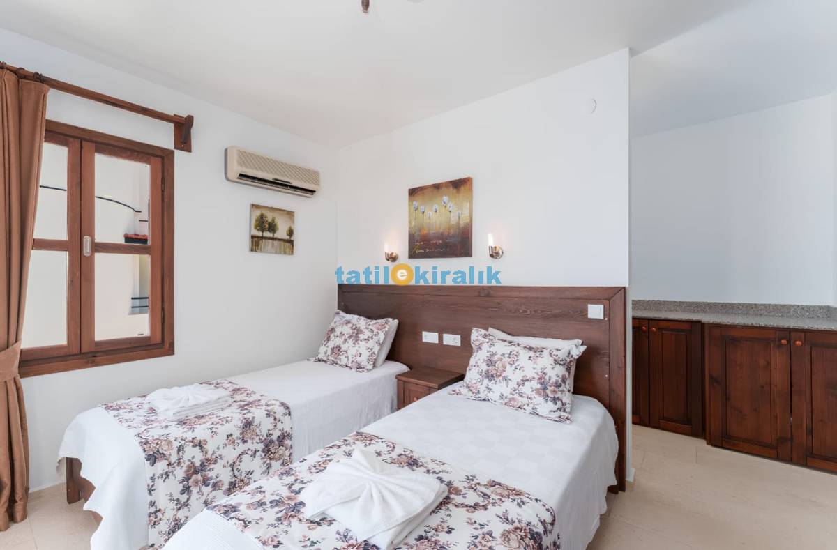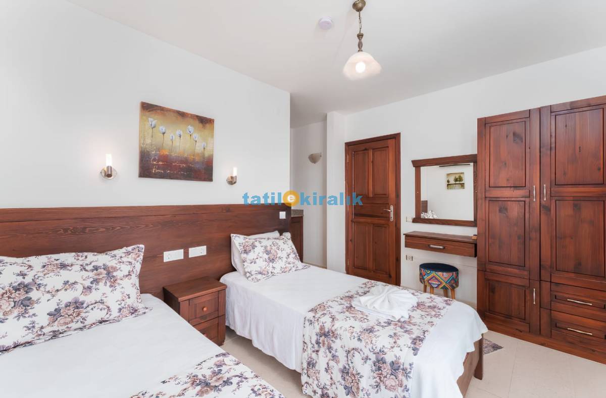 Detayları: 2 adet tek kişilik yatak , komodin , elbise dolabı , makyaj masası , klima , saç kurutma makinası , banyo ve tuvalet bulunmaktadır.