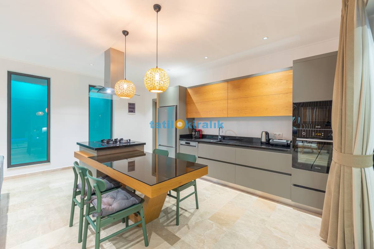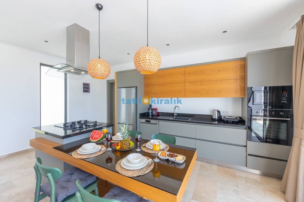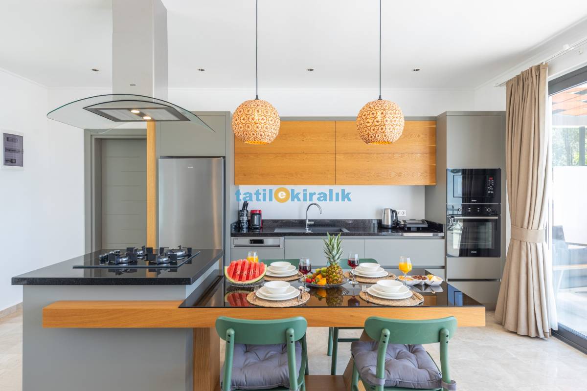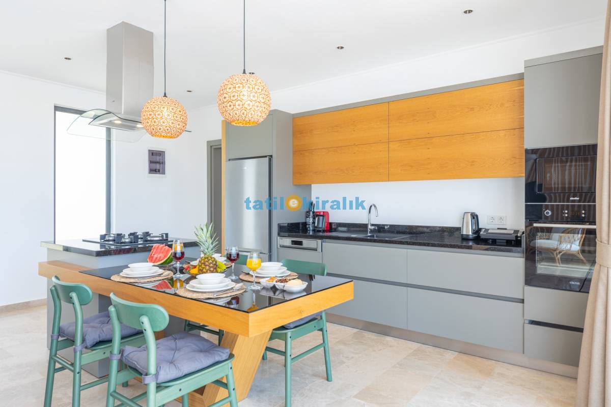 Mutfak Detayları: Buzdolabı, bulaşık makinesi, fırın, çamaşır makinesi, mikro dalga fırın, elektrikli su ısıtıcısı, kahve makinesi, yemek takımı, tava-tencere, çatal-bıçak seti bulunmaktadır.