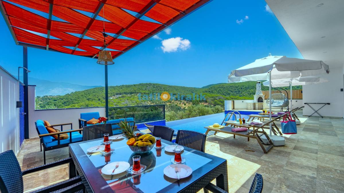 Havuz Terası Detayları : Şezlong, Şemsiye,Yemek Masası, Barbekü, Masa Tenisi