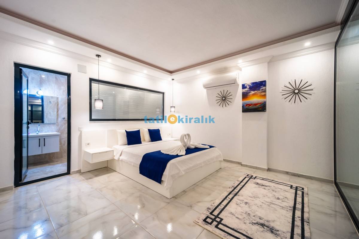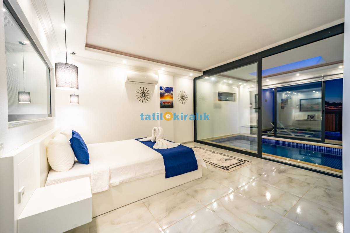 Detayları : Çift kişilik yatak , klima , kapalı havuz, komodin , elbise dolabı , makyaj masası , banyo ve lavabo bulunmaktadır.