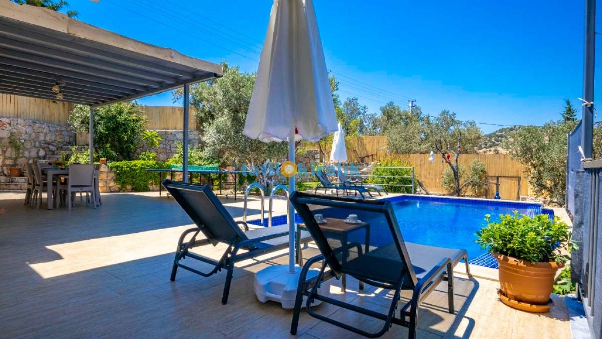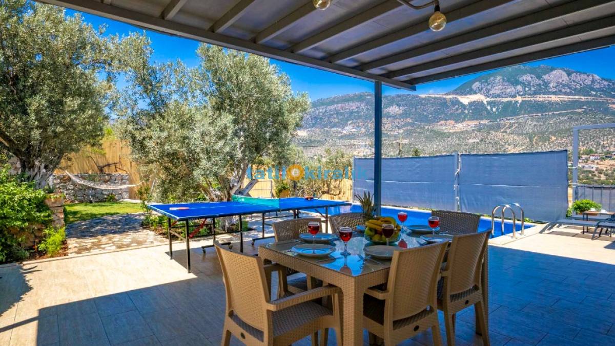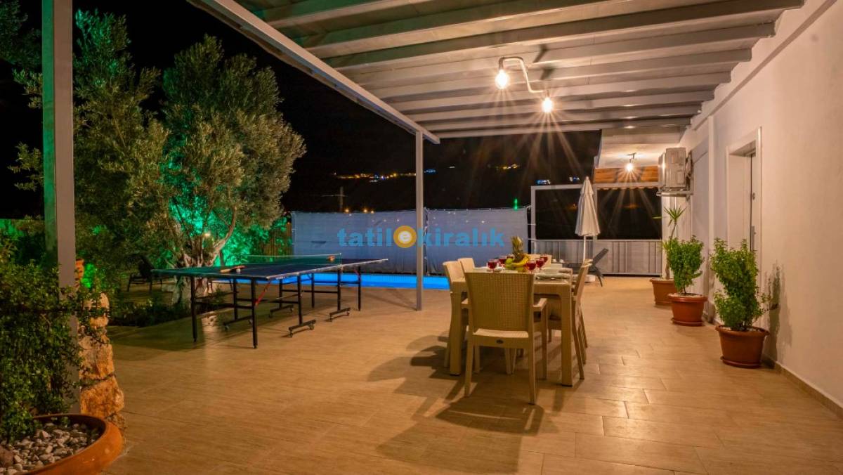 Havuz Terası Detayları : Şezlong , güneşlenme şemsiyesi , masa tenisi , hamak , barbekü , yemek masası ve sandalyeleri bulunmaktadır.
