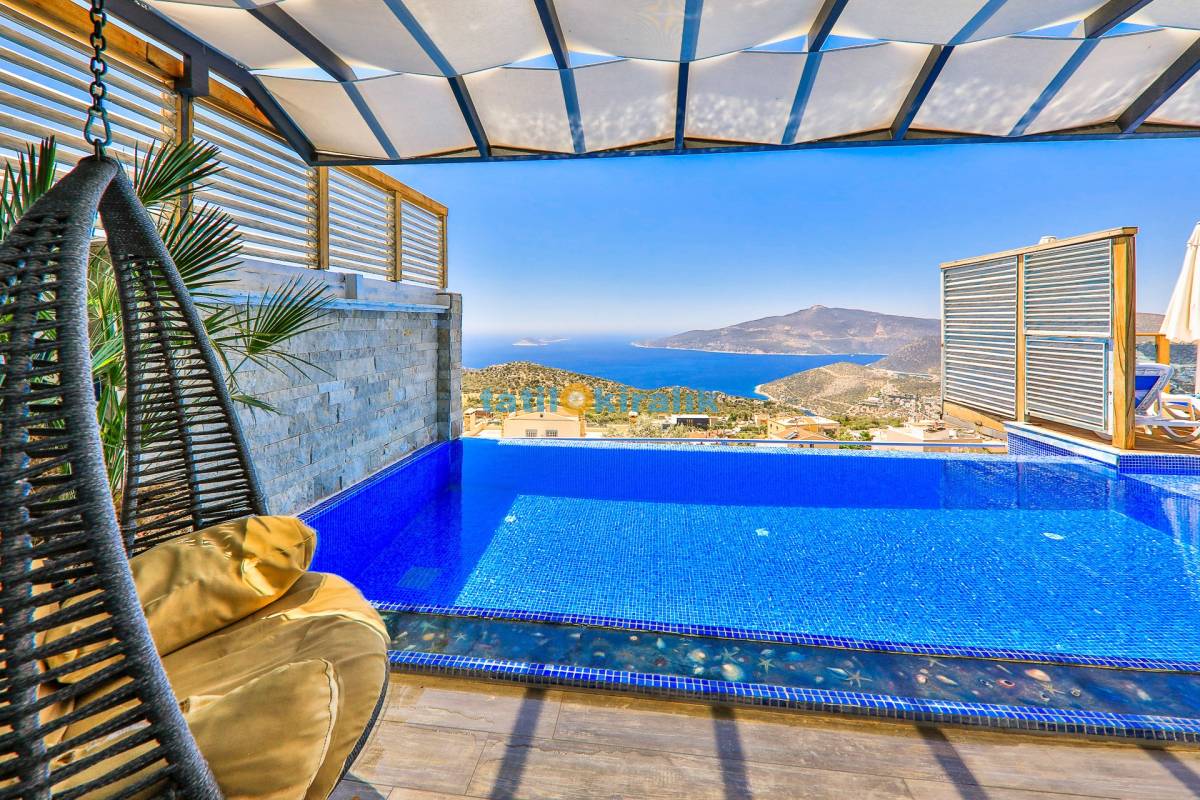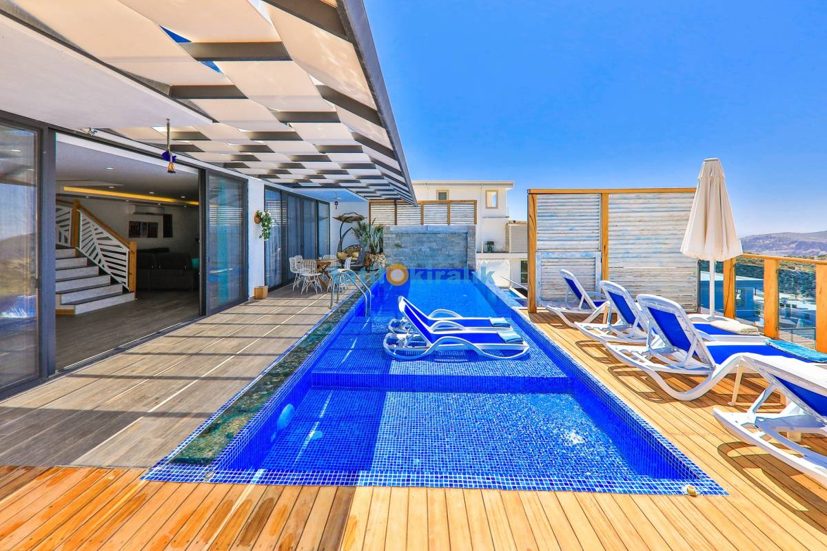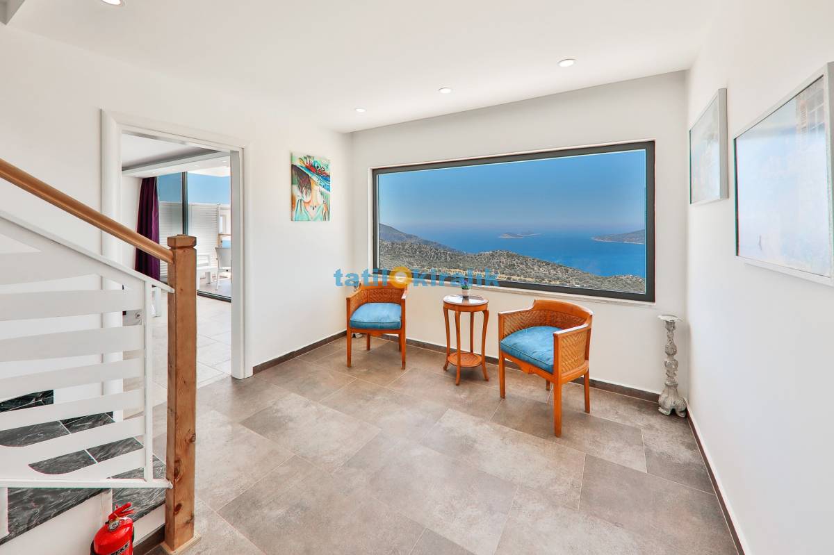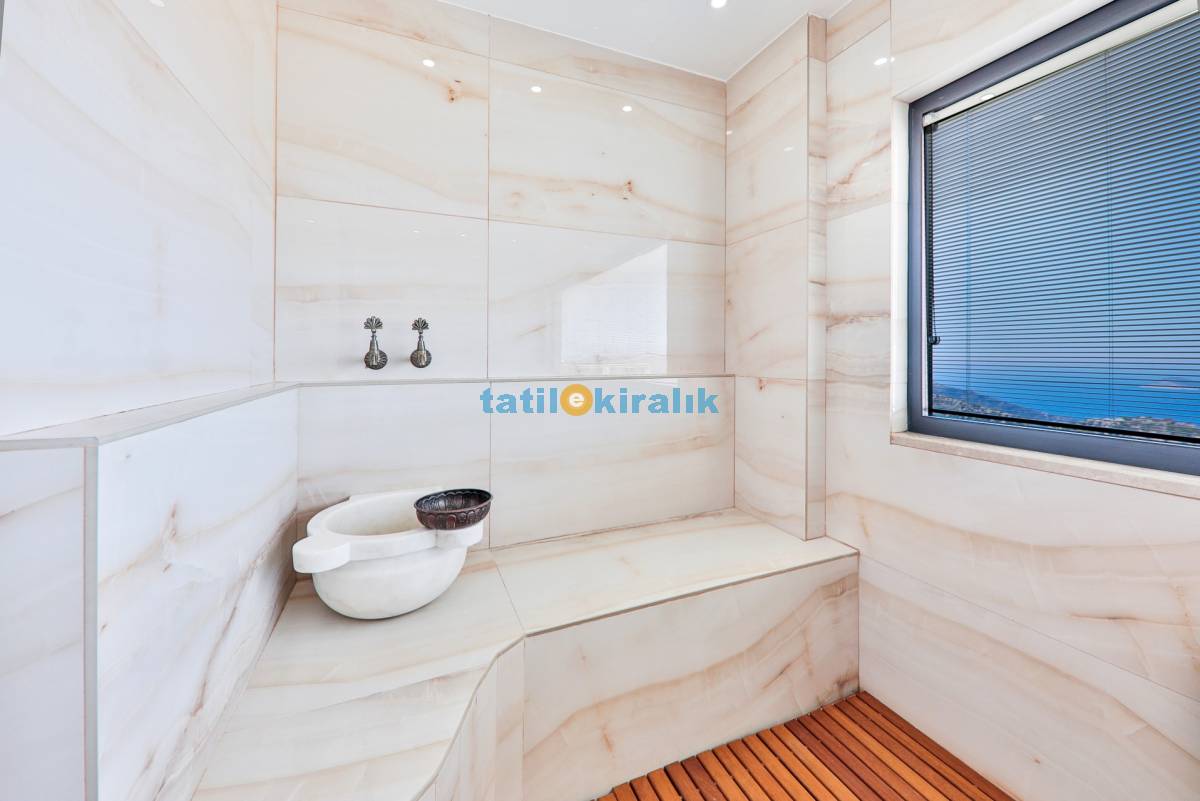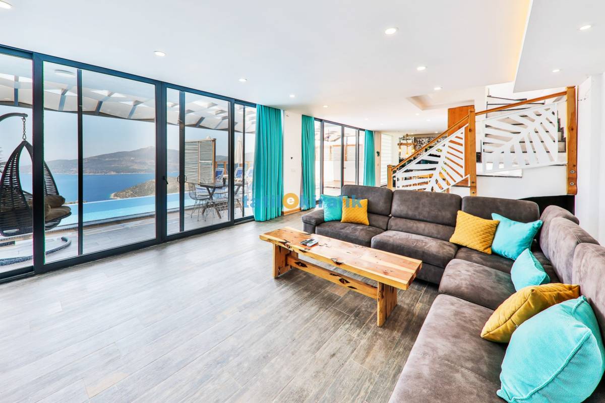 Salon Detayları: Modern oturma grubu, projeksiyon perde sistemi, kablosuz internet, klima ve havuz terasına çıkış bulunmaktadır.