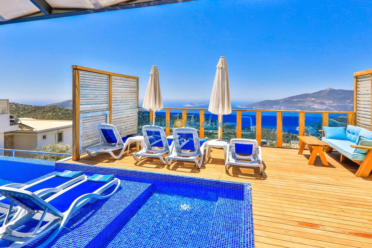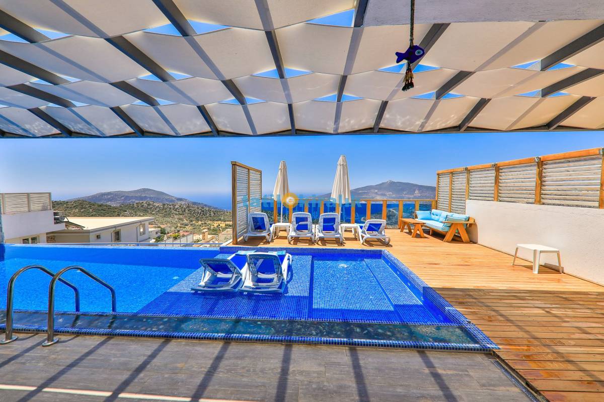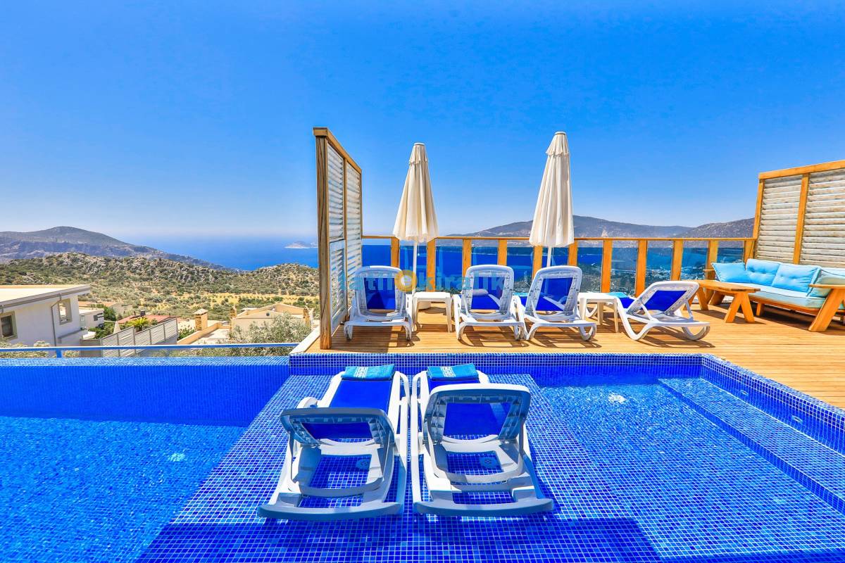 Havuz Terası Detayları : Şezlong, şemsiye, yemek masası, sandalyeler ve mangal bulunmaktadır.