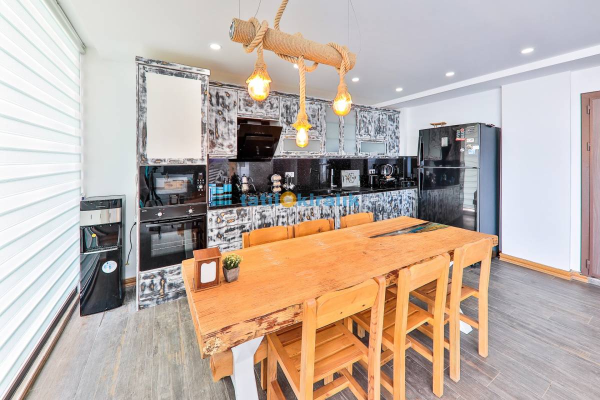 Mutfak Detayları: 6 kişilik yemek masası ve sandalye, Buzdolabı, bulaşık makinesi, çamaşır makinesi, fırın, 4’lü Ocak (ankastre), elektrikli su ısıtıcı, tava & tencere vb. mutfak ekipmanları bulunmaktadır.