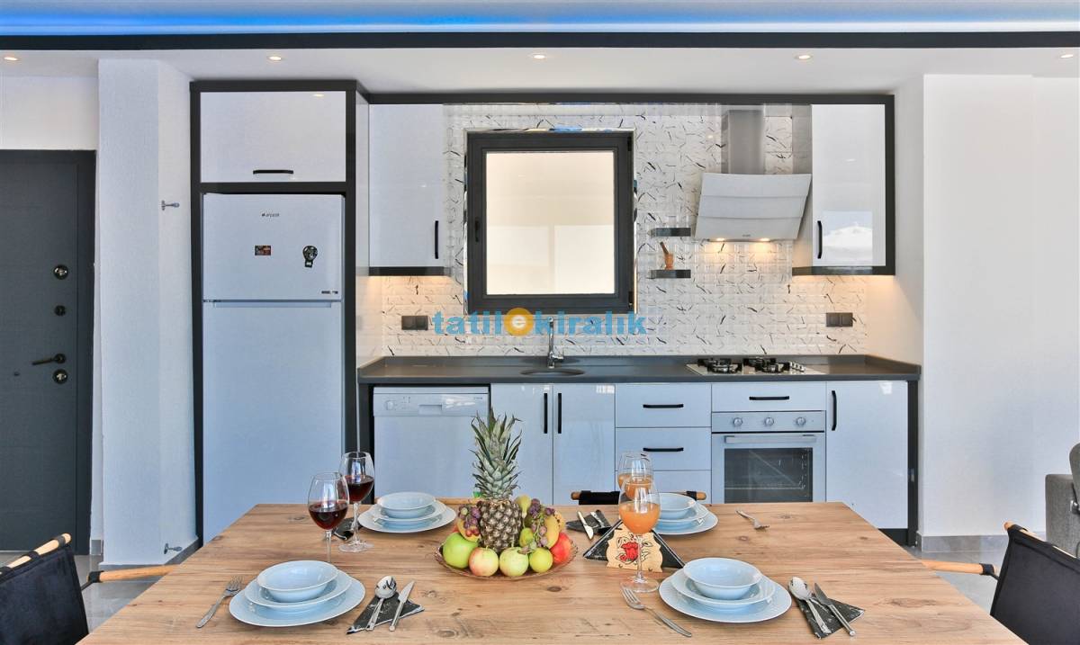 Mutfak Detayları : Buzdolabı, bulaşık makinesi, fırın, çamaşır makinesi, tost makinası, mikrodalga, yemek takımı, tava-tencere, çatal-bıçak seti bulunmaktadır.