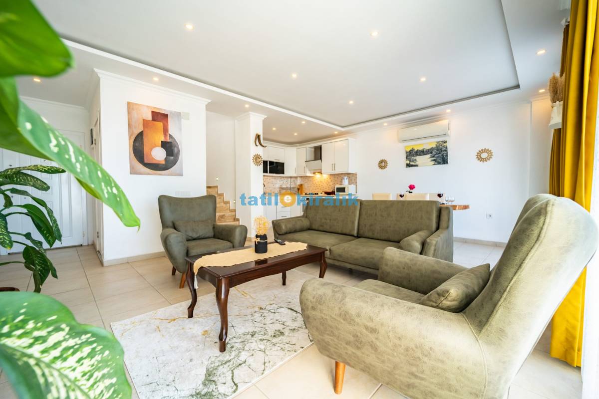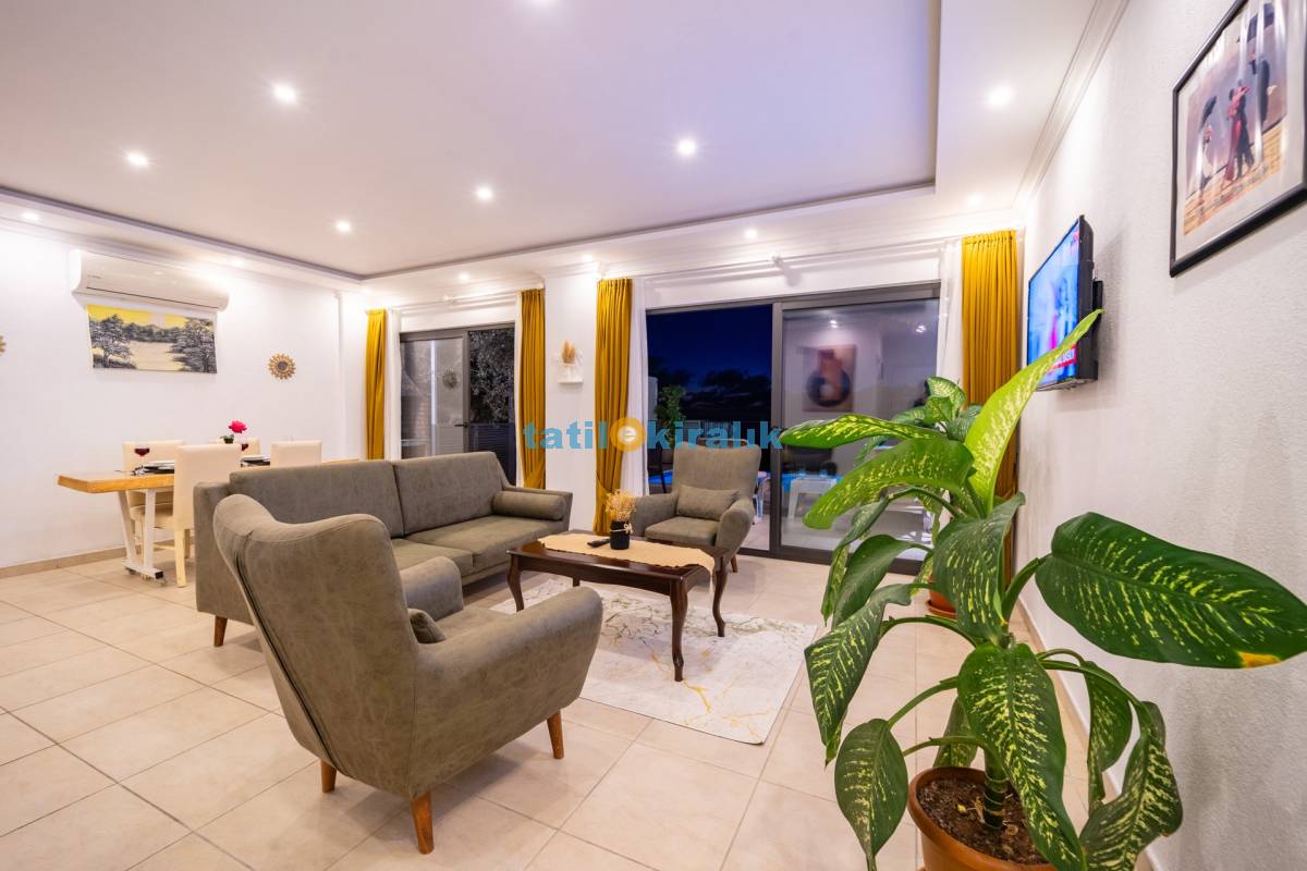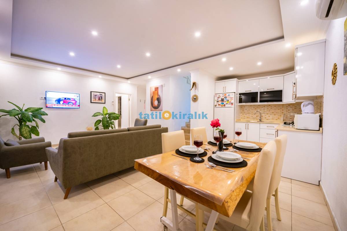 Salon Detayları :  Tv , klima , modern  oturma , grubu , yemek masası ve sandalyeler , kablosuz modem Bulunmaktadır.