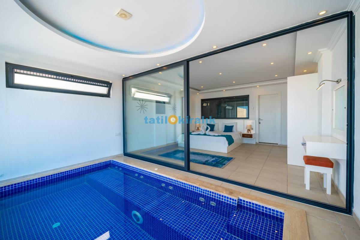 Detayları : Çift kişilik yatak , klima , kapalı havuz,  komodin , elbise dolabı , makyaj masası , banyo ve lavabo Bulunmaktadır.