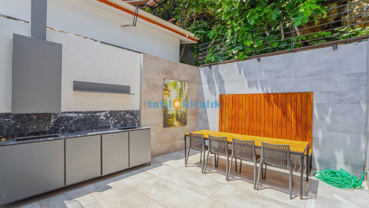Havuz Terası Detayları : Şezlong, güneşlenme şemşiyesi, barbekü, yemek masası ve sandalyeleri bulunmaktadır.