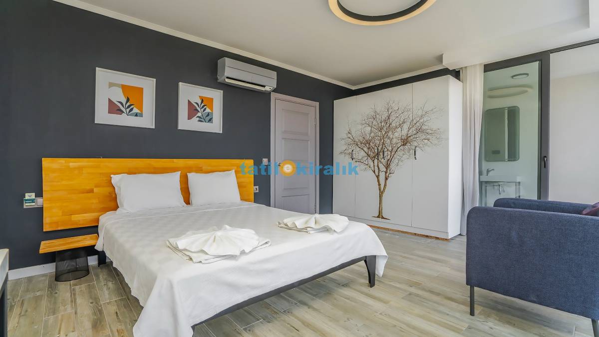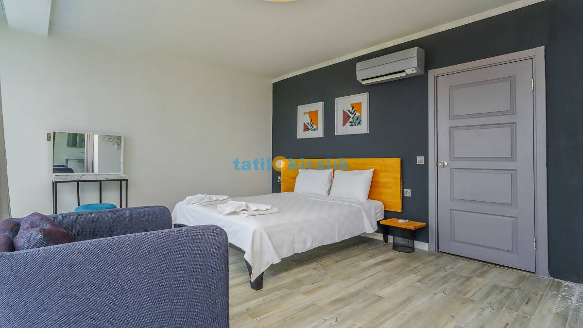 Detayları : Çift kişilik yatak, klima , komidin,makyaj masası, elbise dolabı ,tuvalet ve banyo bulunmaktadır.