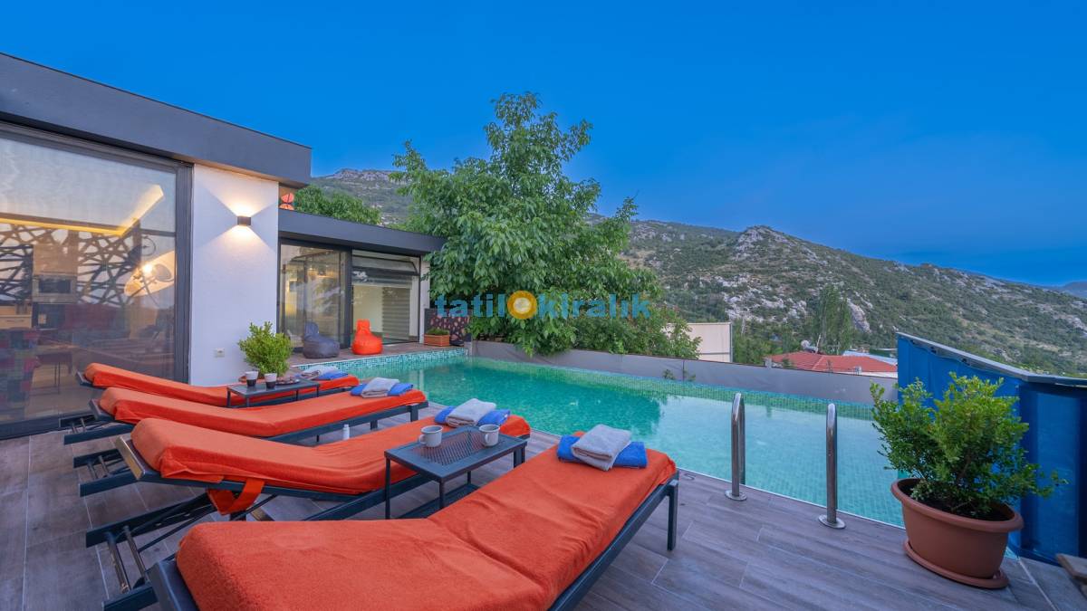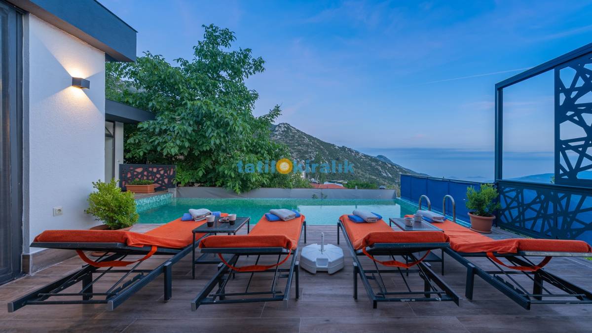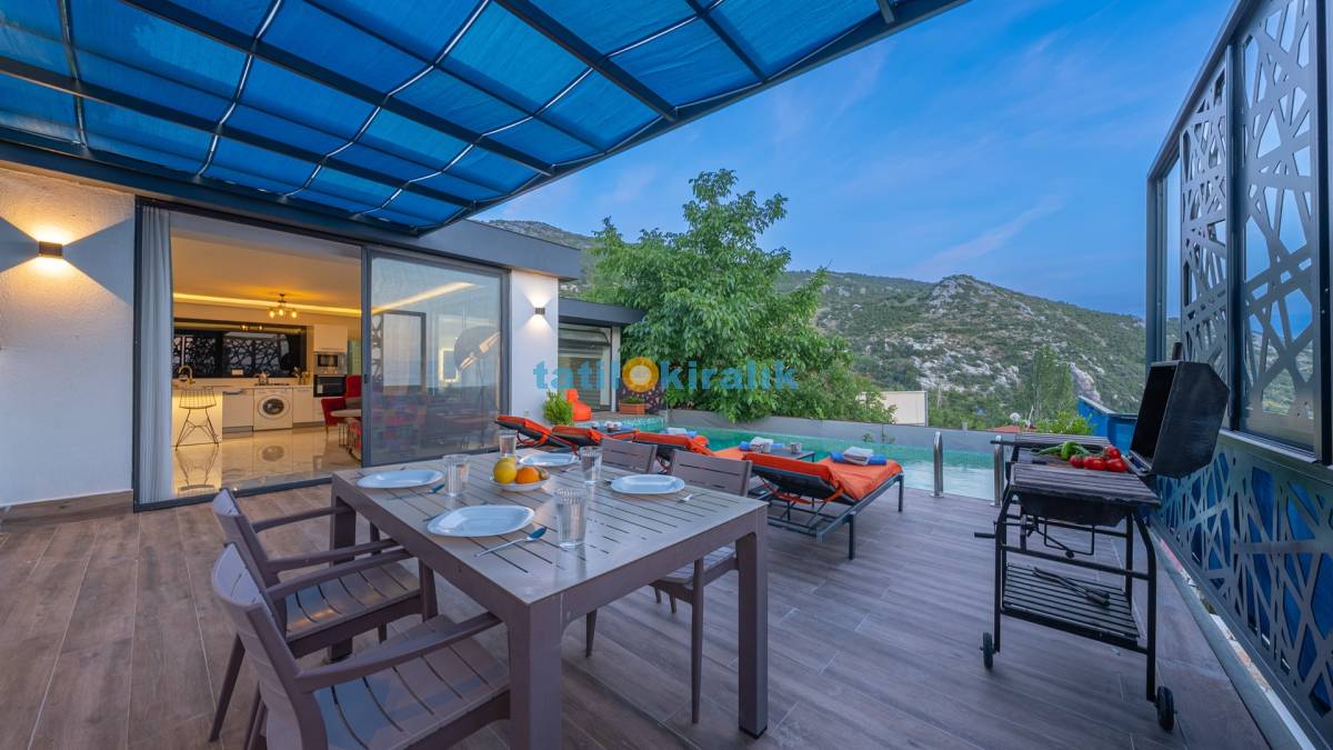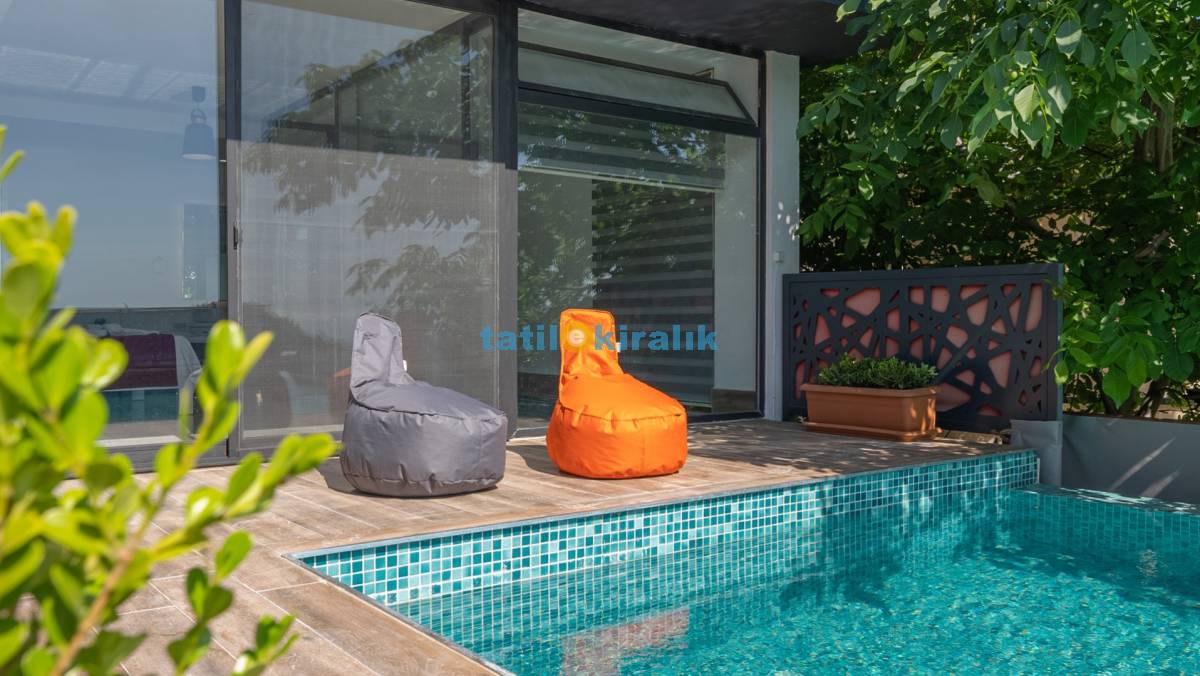 Havuz Terası Detayları : Şezlong, mangal, yemek masası ve sandalyeleri bulunmaktadır.