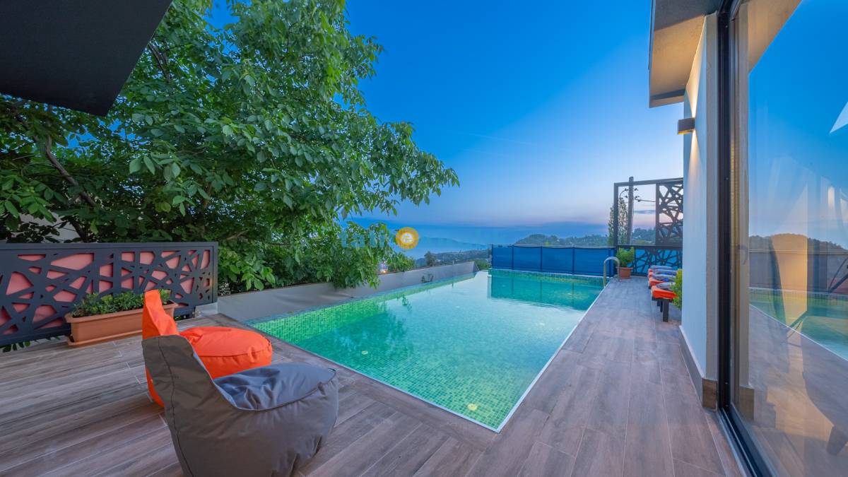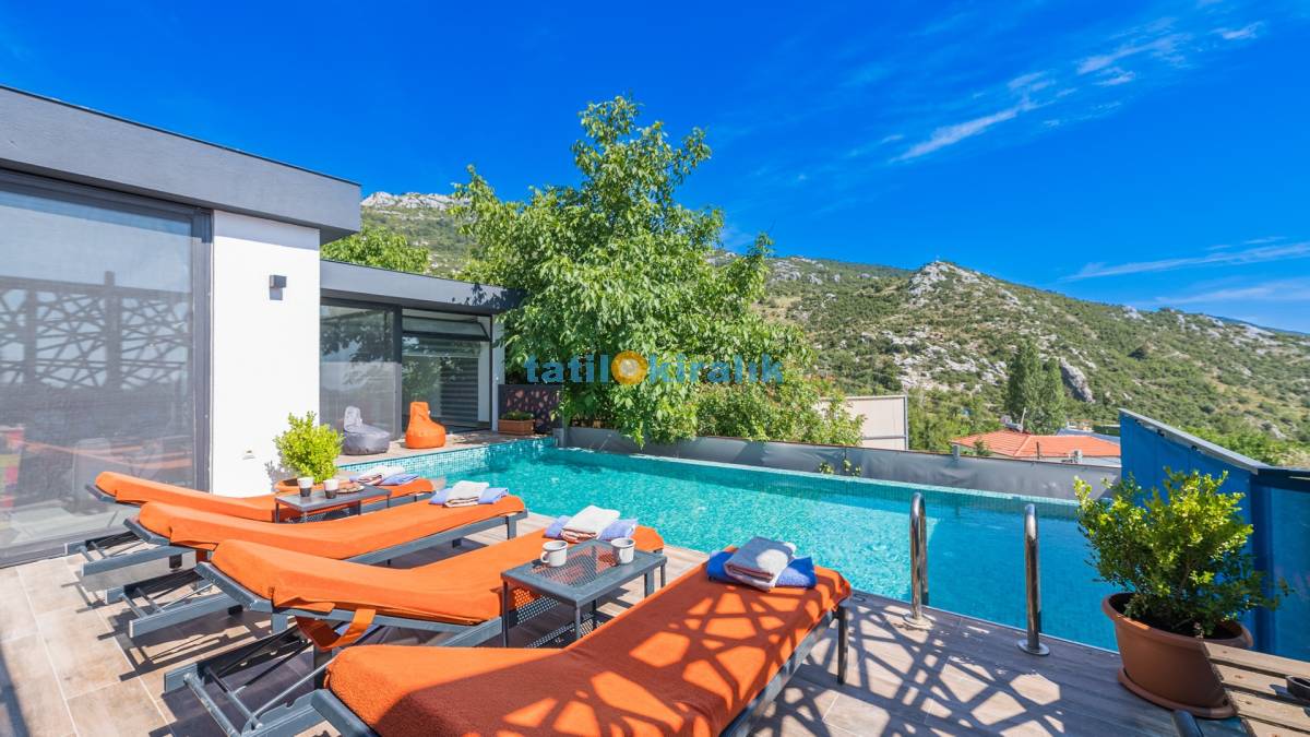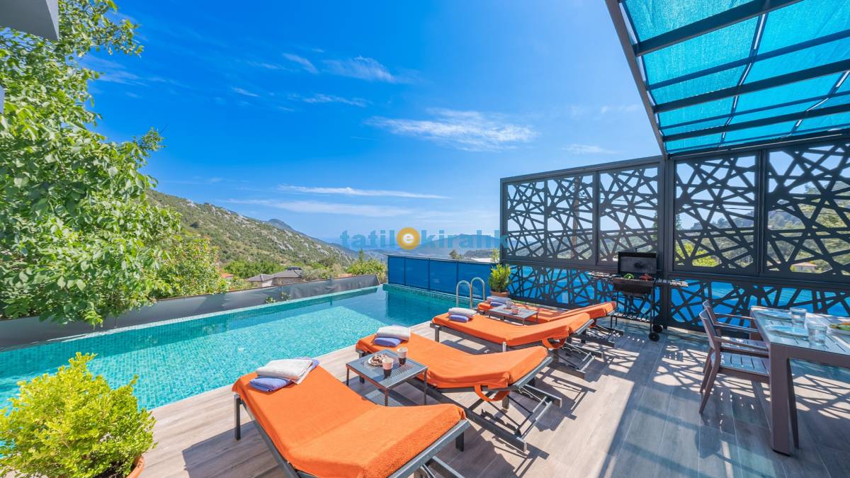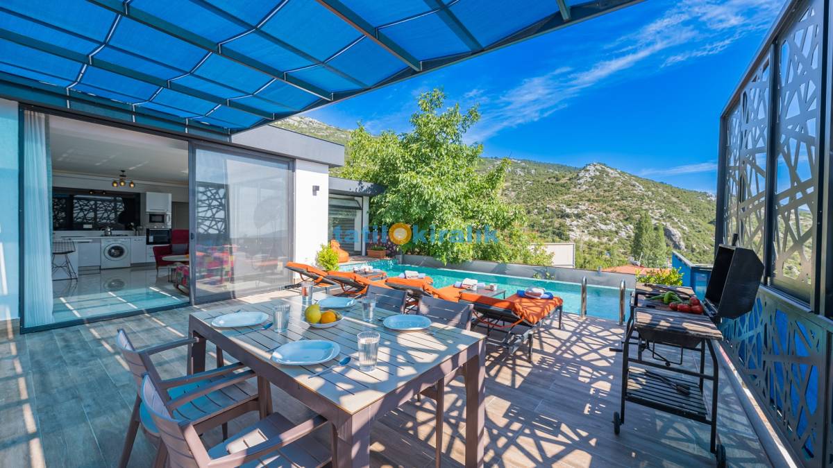 Havuz Terası Detayları : Şezlong, mangal, yemek masası ve sandalyeleri bulunmaktadır.