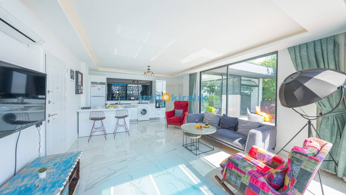 Salon Detayları: TV,modern oturma grubu,yemek masası, sandalyeler bulunmaktadır.