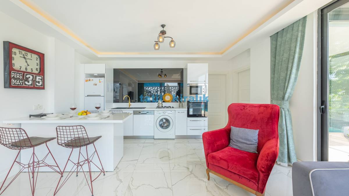Mutfak Detayları: Buzdolabı, bulaşık makinesi, fırın, çamaşır makinesi, yemek takımı, tava-tencere, çatal-bıçak seti bulunmaktadır.