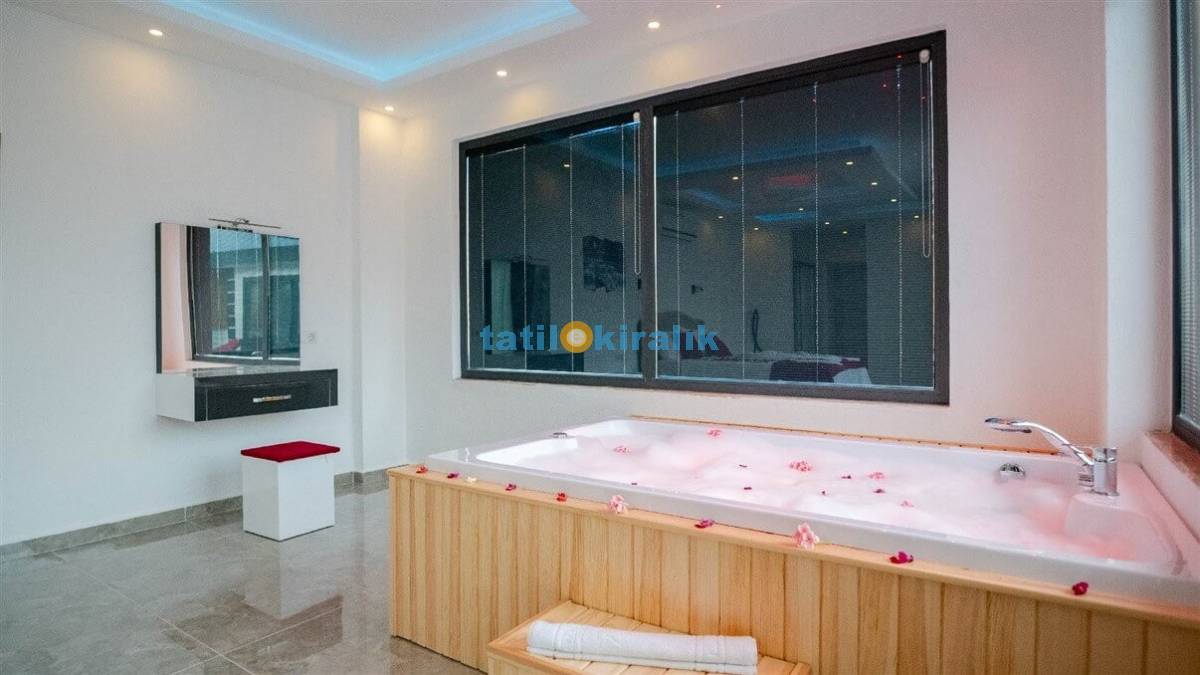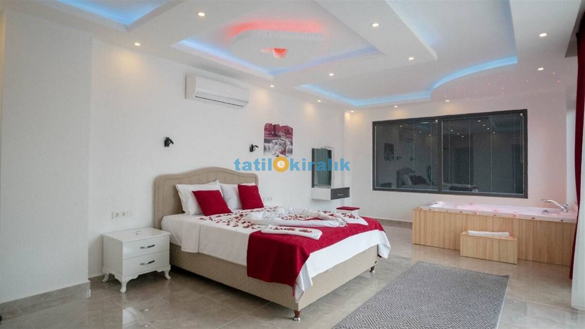 Detayları : Çift kişilik yatak ,klima, jakuzi, ,elbıse dolabı,makyaj masası,banyo ve tuvalet bulunmaktadır.