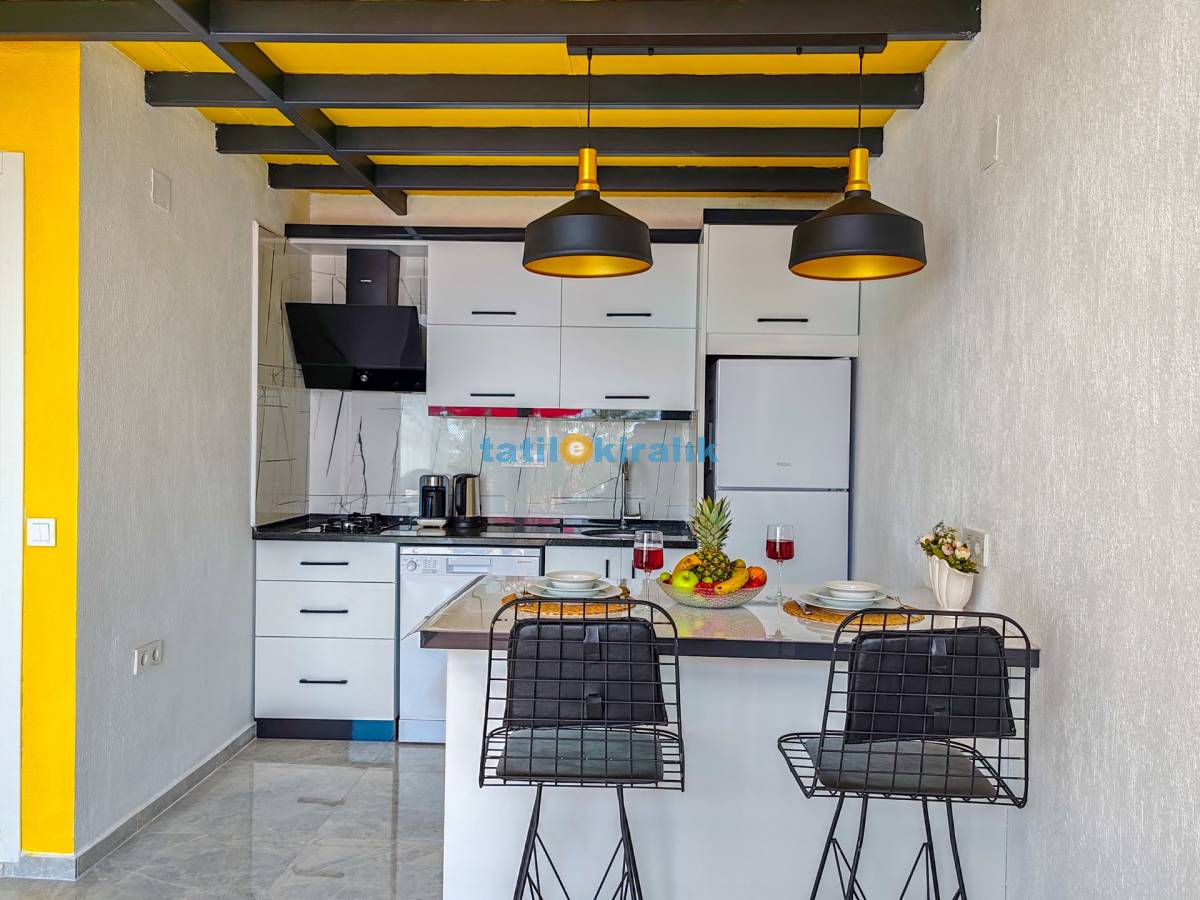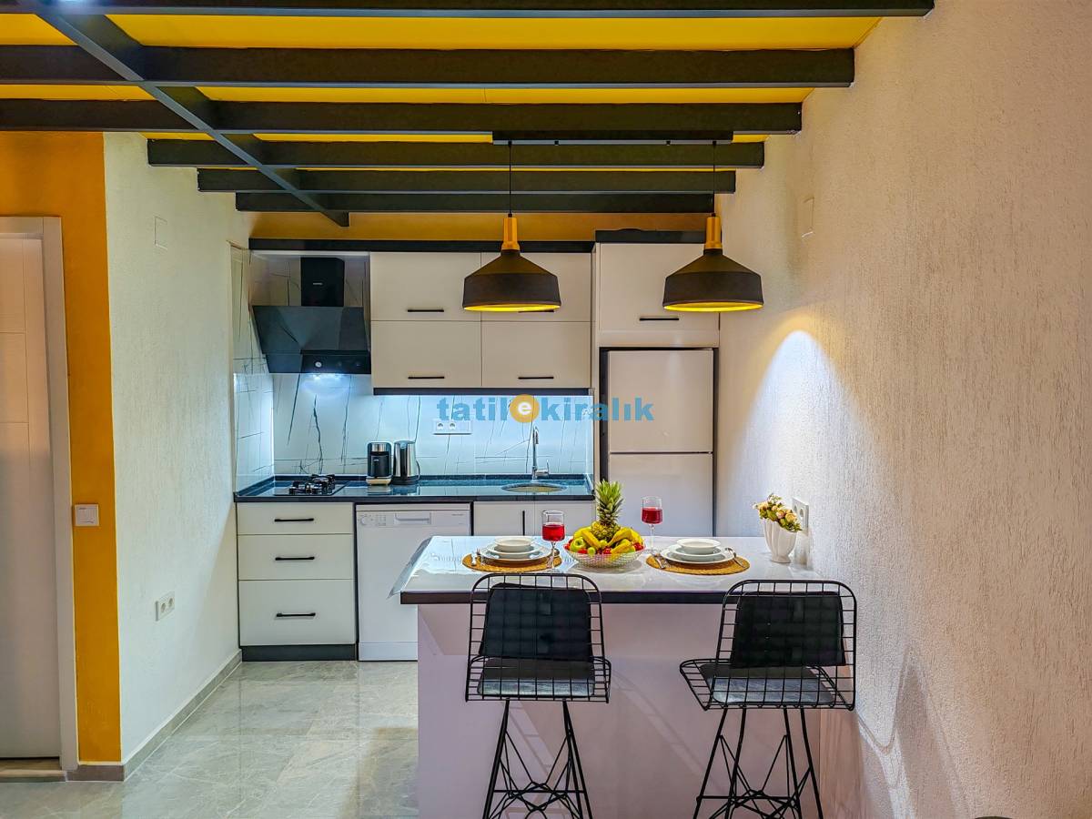 Mutfak Detayları: Buzdolabı, bulaşık makinesi, fırın, mikrodalga, tost makinesi çamaşır makinesi, yemek takımı, tava-tencere, çatal-bıçak seti bulunmaktadır.