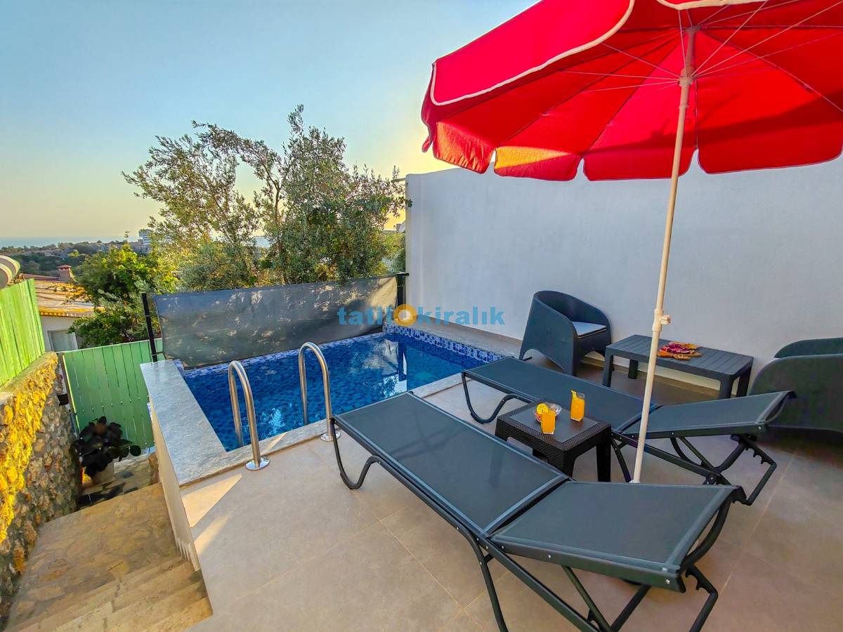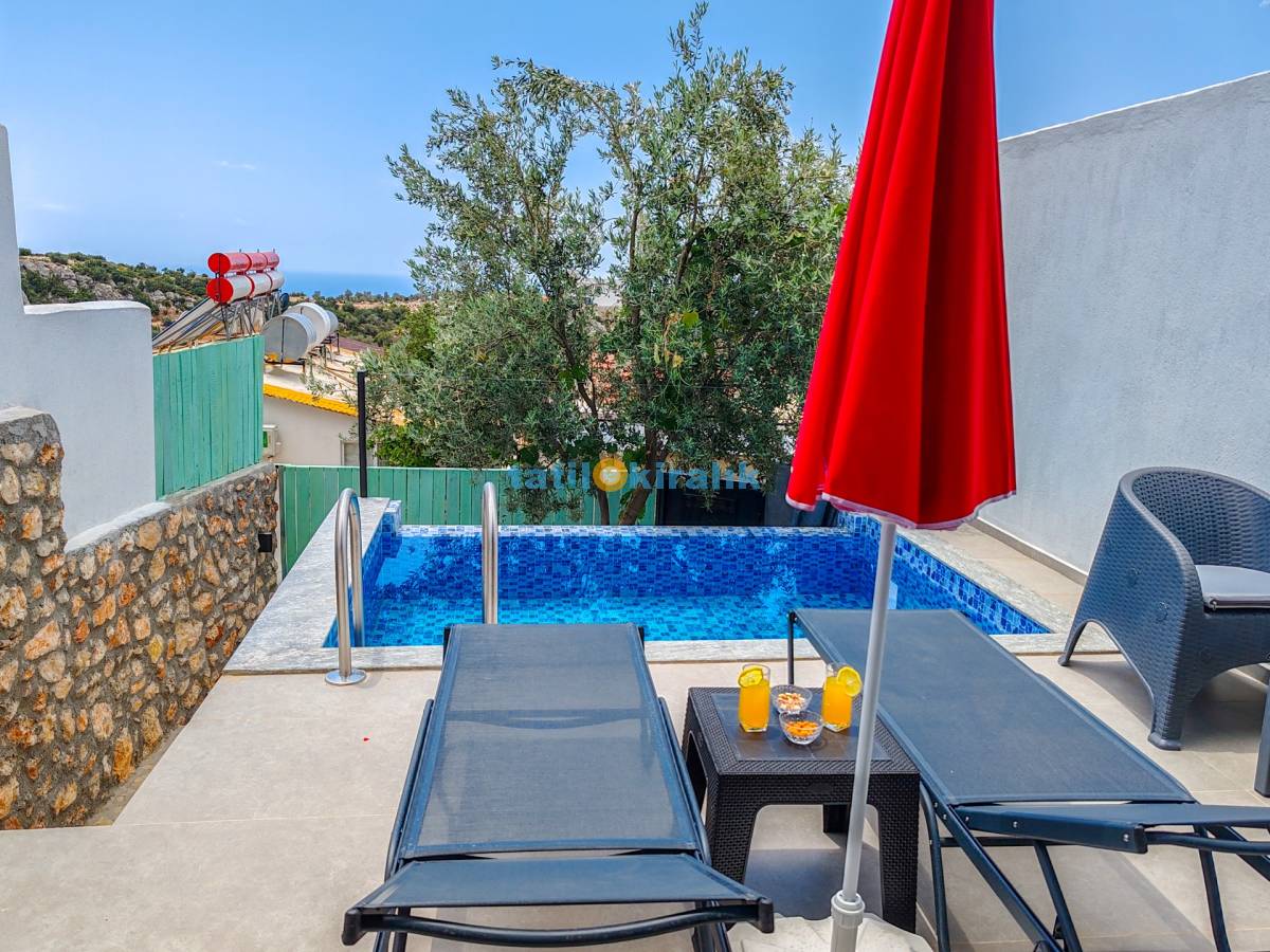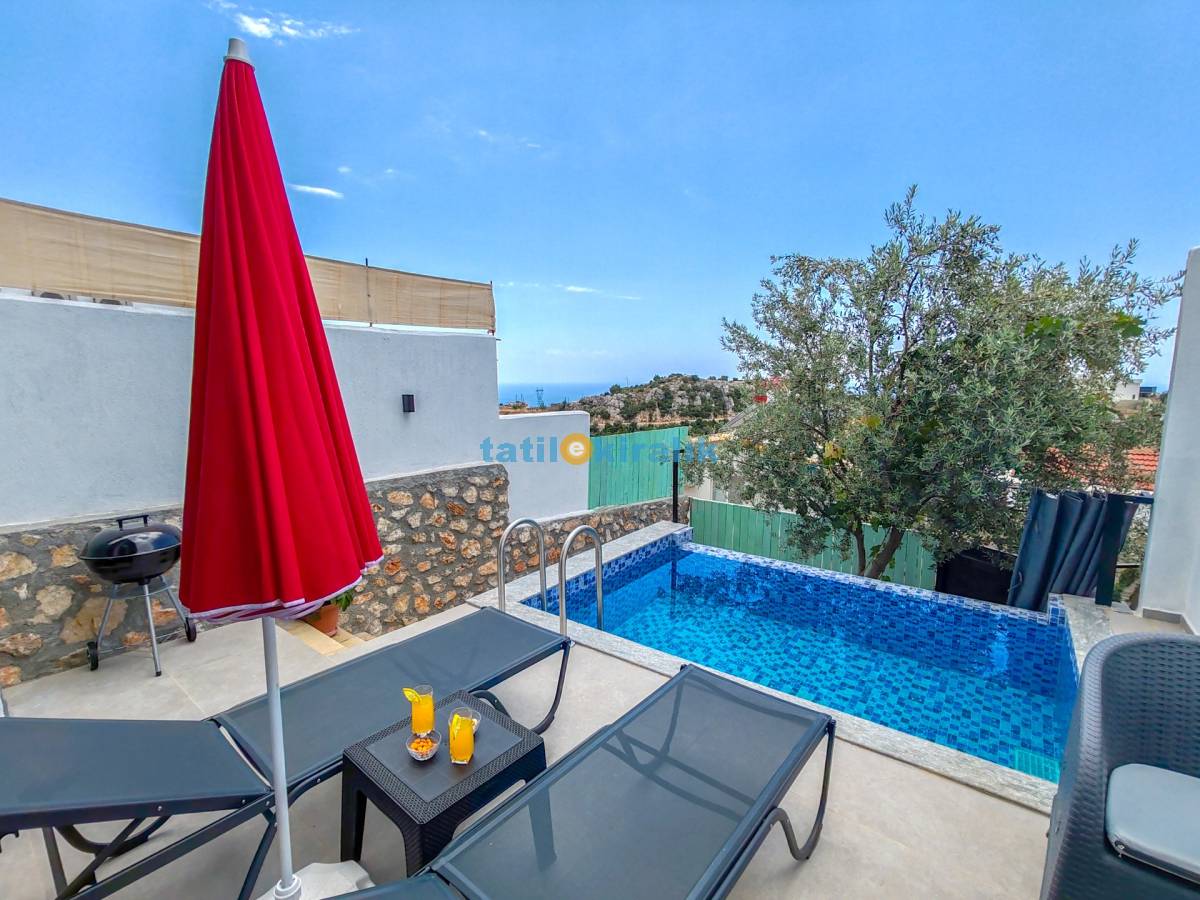 Havuz Terası Detayları : Şezlonglar, şemsiye, barbekü, ve oturma grubu bulunmaktadır.