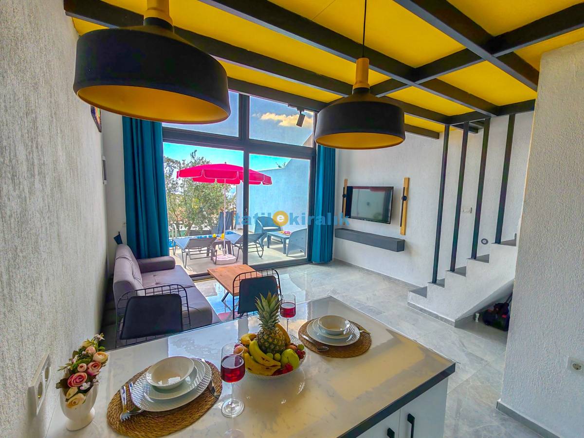 Salon Detayları: Led tv, oturma grubu, yemek masası ve banyo & tuvalet bulunmaktadır.