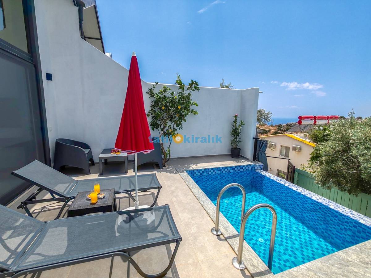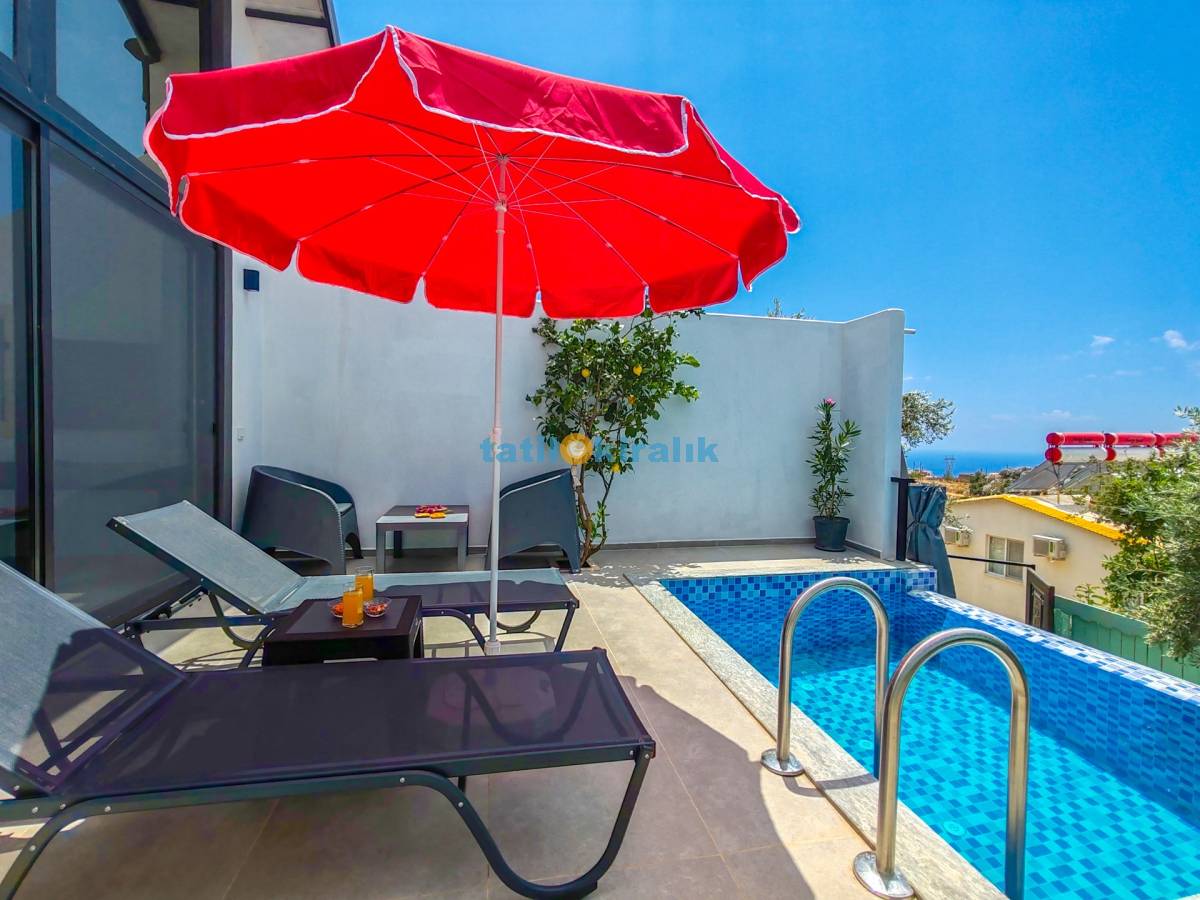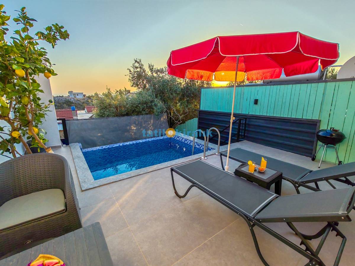 Havuz Terası Detayları : Şezlonglar, şemsiye, barbekü, ve oturma grubu bulunmaktadır.