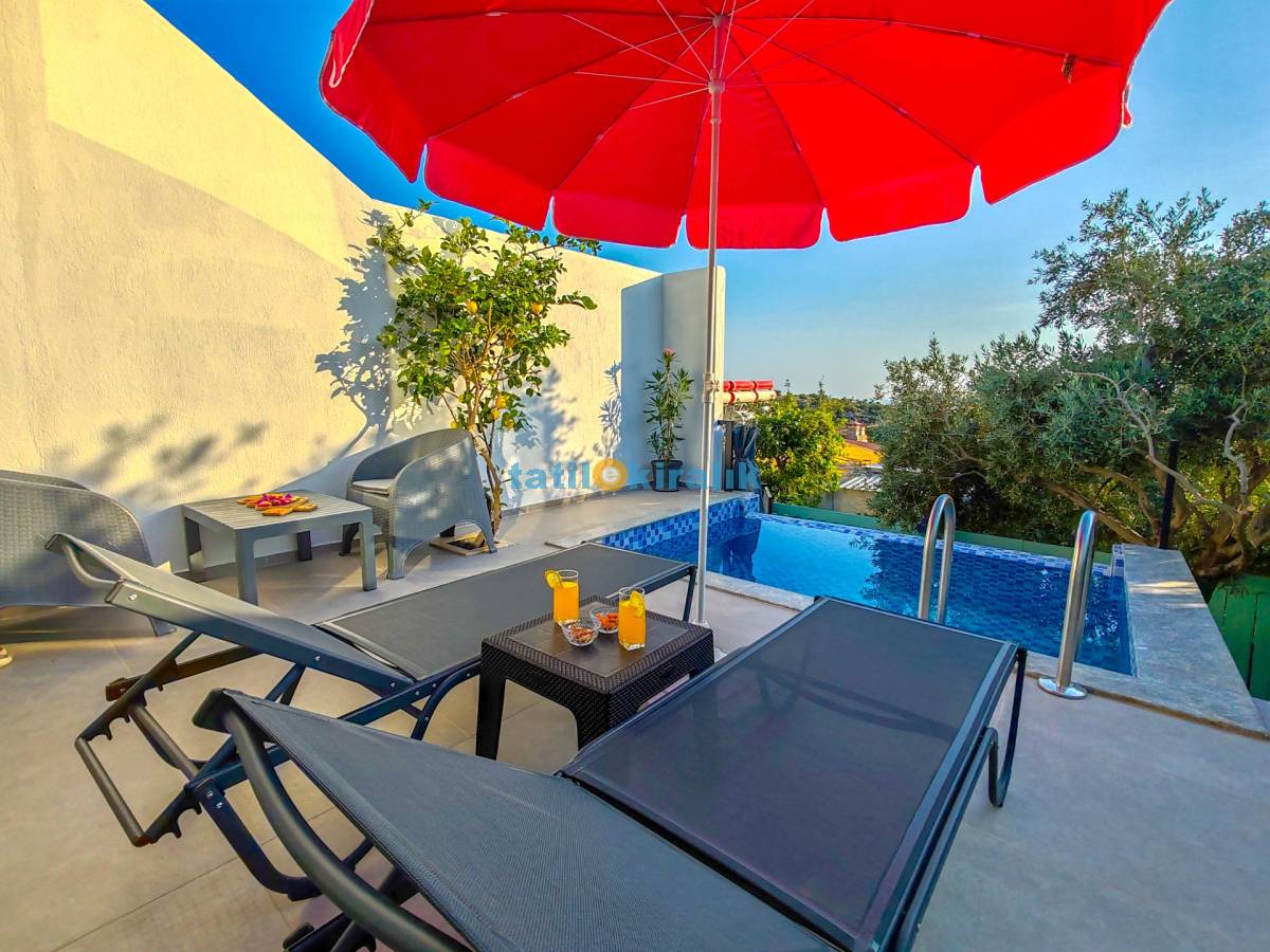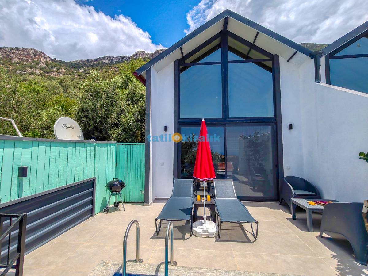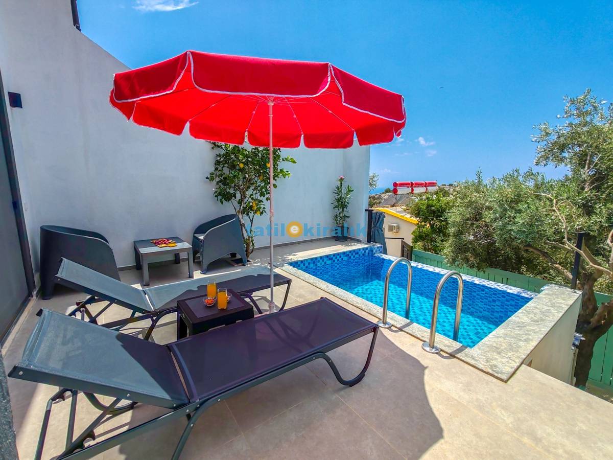 Havuz Terası Detayları : Şezlonglar, şemsiye, barbekü, ve oturma grubu bulunmaktadır.