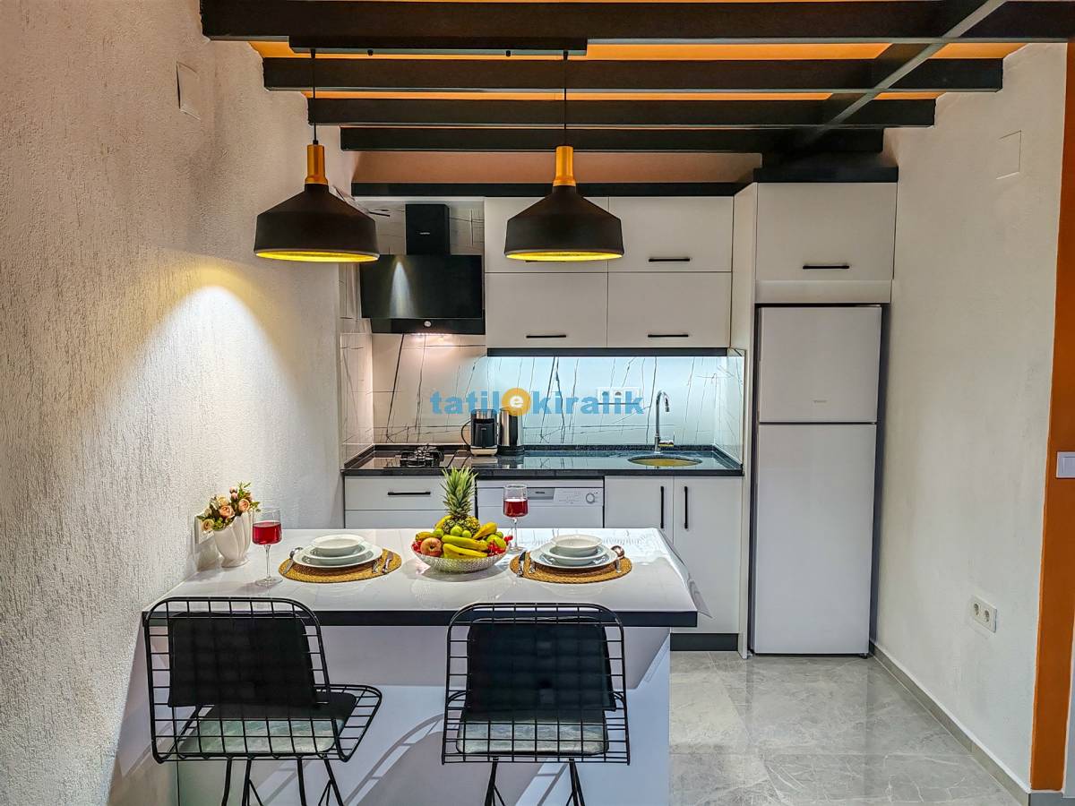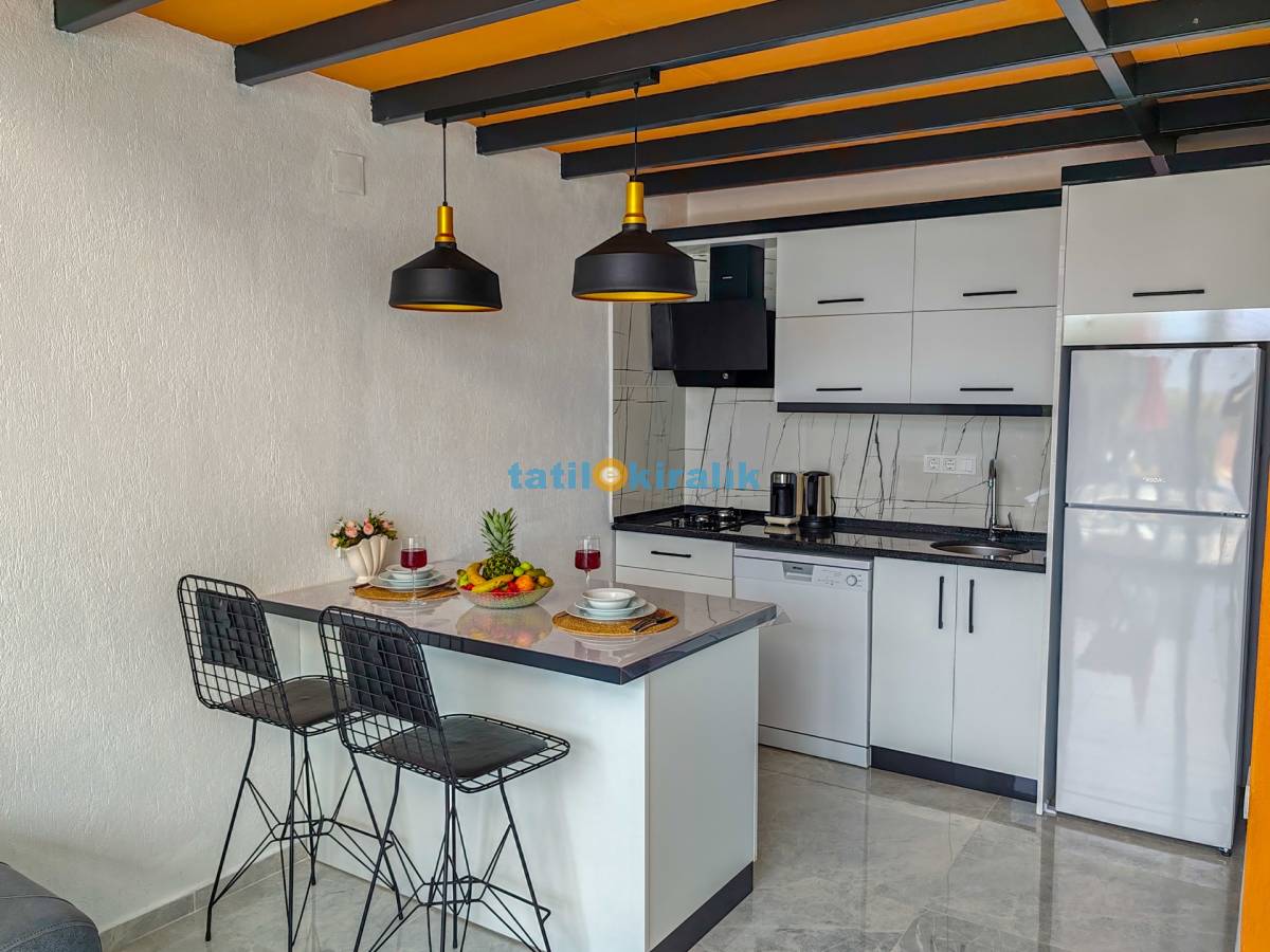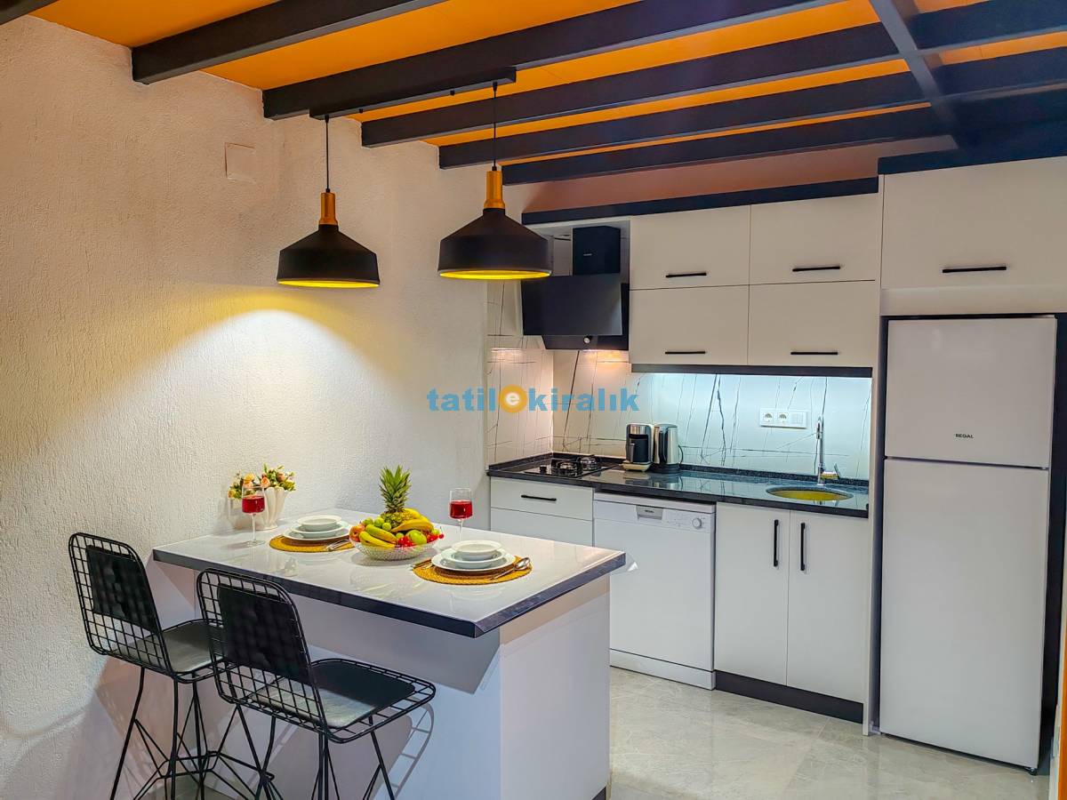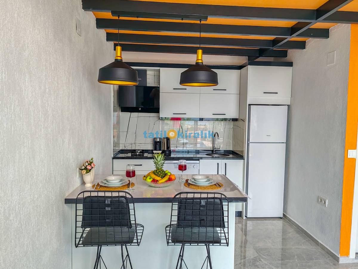 Mutfak Detayları: Buzdolabı, bulaşık makinesi, fırın, mikrodalga, tost makinesi çamaşır makinesi, yemek takımı, tava-tencere, çatal-bıçak seti bulunmaktadır.