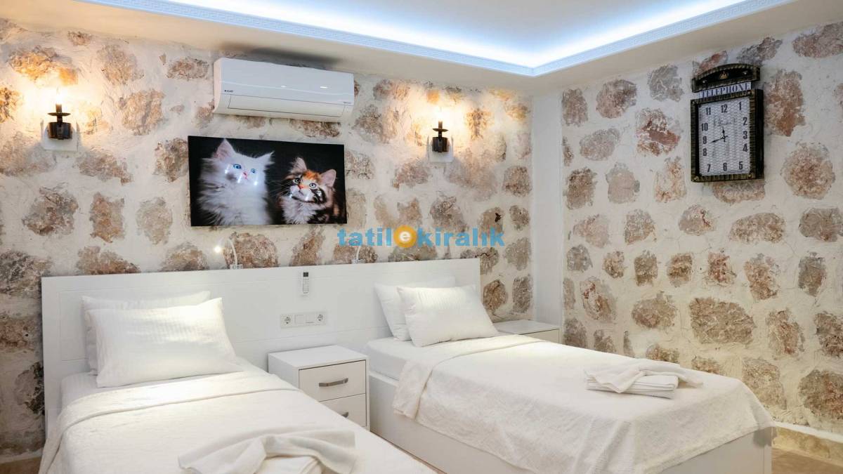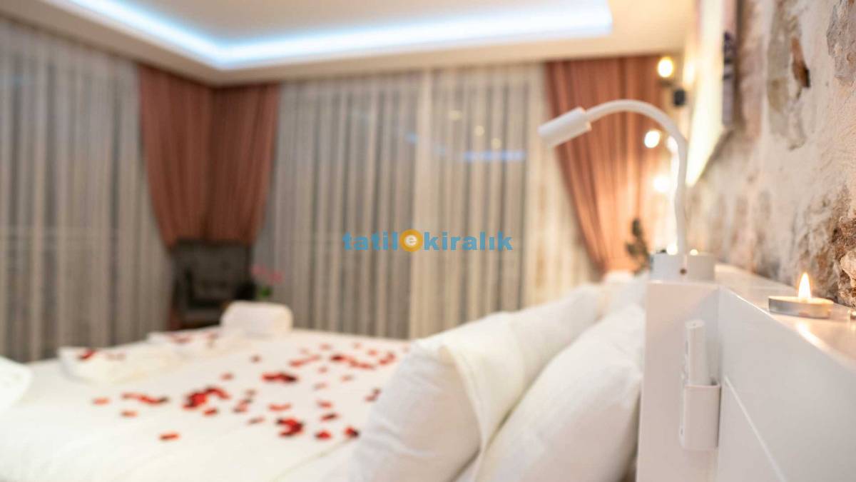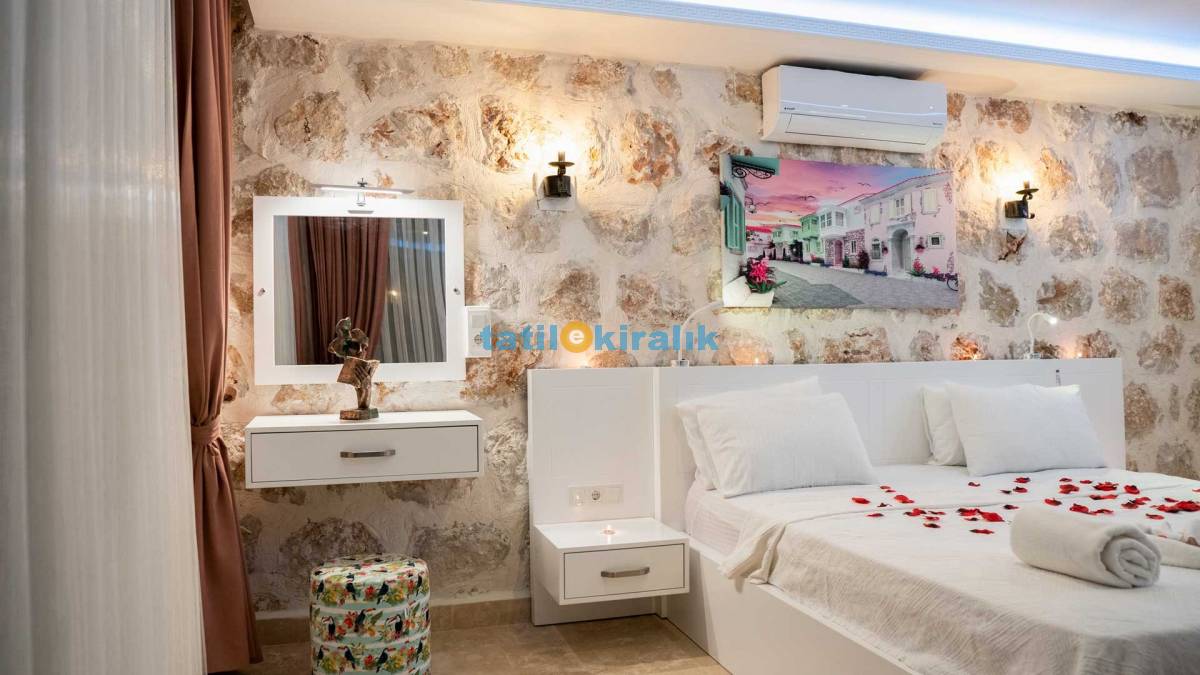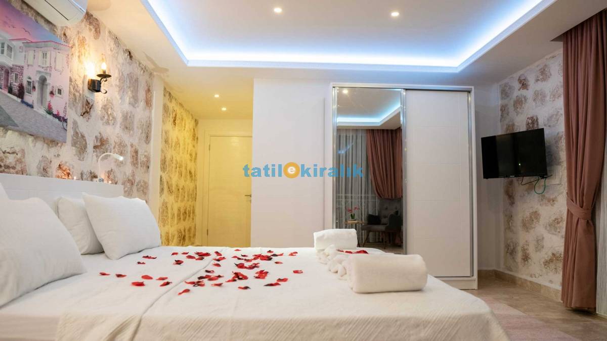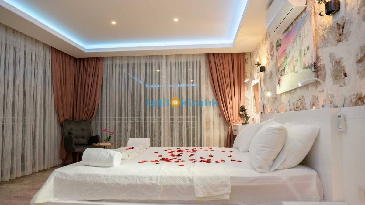 Detayları : Yatak Odası: 1 adet çift kişilik yatak, elbise dolabı, komodin, LCD TV, klima, wc ve banyo bulunmaktadır.