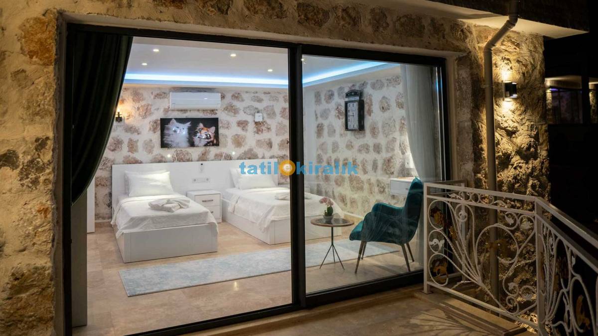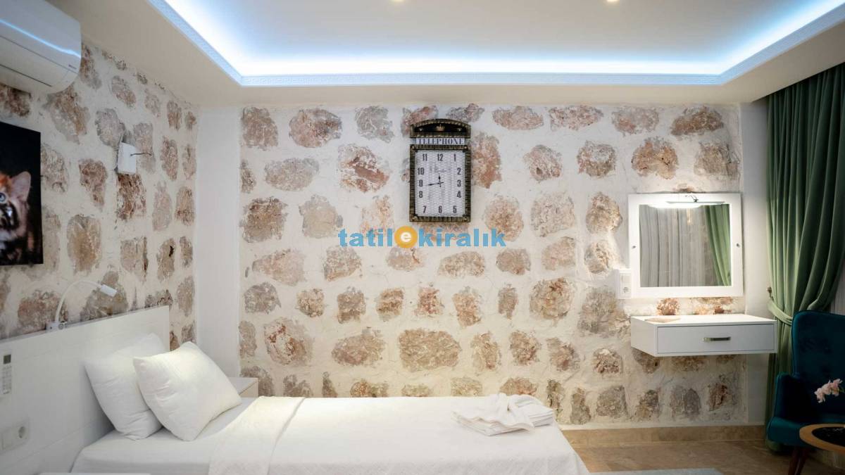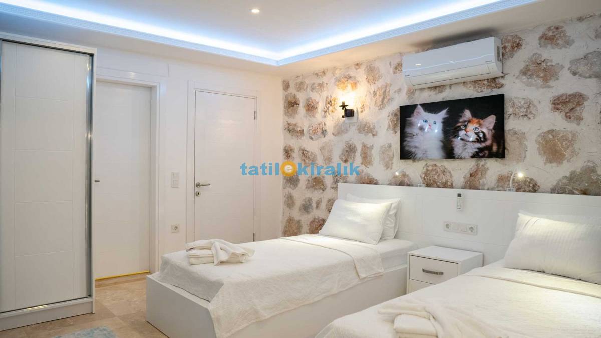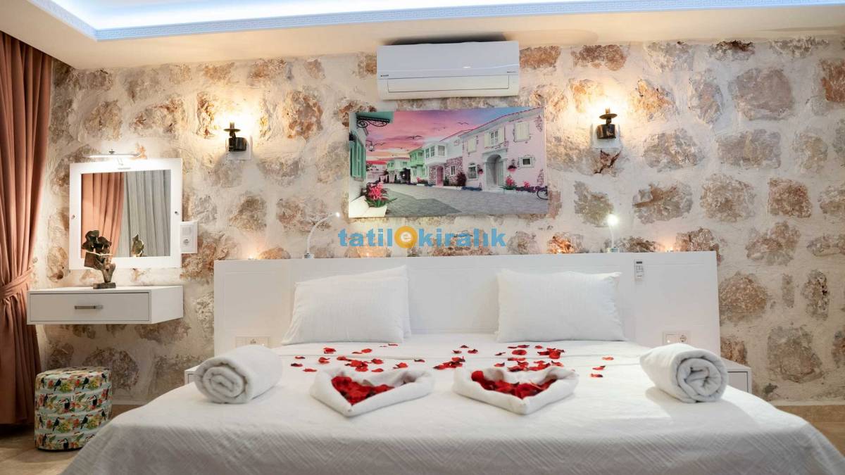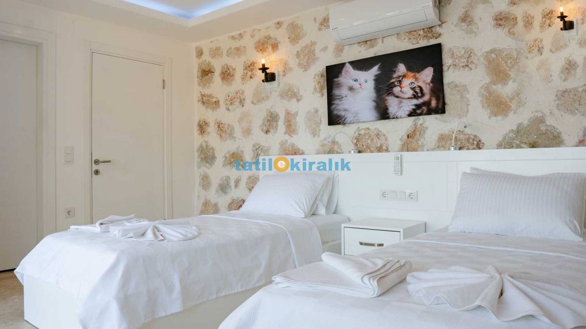 Detayları : Yatak Odası: 1 adet çift kişilik yatak, elbise dolabı, komodin, LCD TV, klima, wc ve banyo bulunmaktadır.