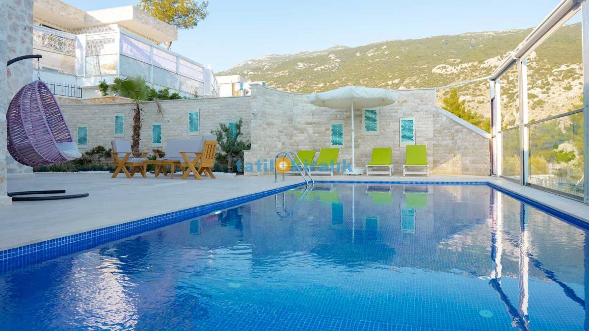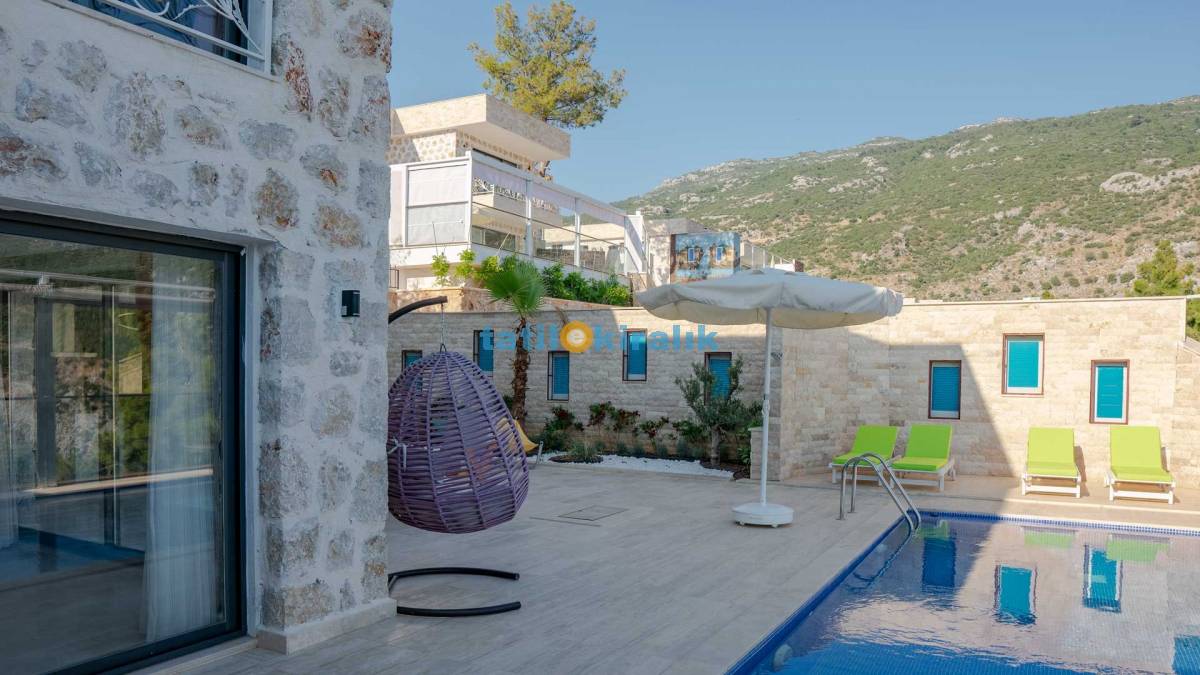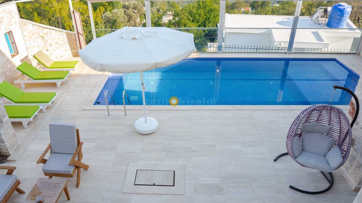 Havuz Terası Detayları :Şezlong, güneşten korunmak için şemsiye, köşk, hamak barbekü ve masa sandalye bulunmaktadır.