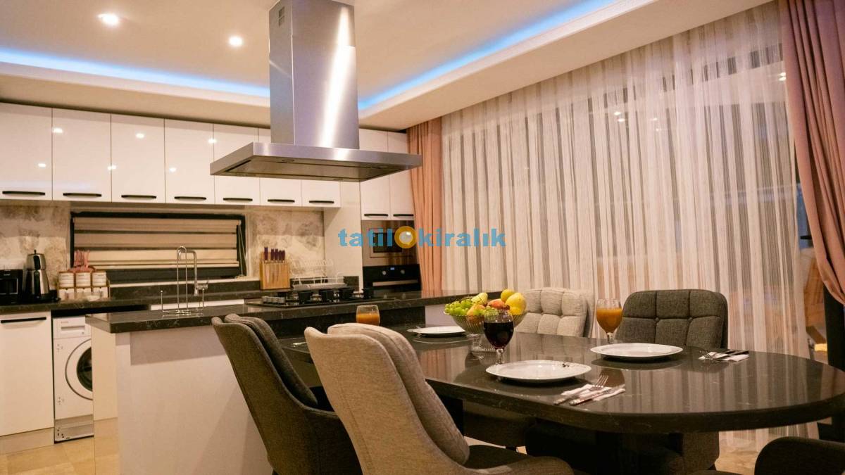 Detayları: Bulaşık makinesi, buzdolabı, elektrikli su ısıtıcı kettle, çamaşır makinesi, fırın, 4’lü ocak, 4 kişilik yemek takımı, mikrodalga, kaşık, bıçak, çatal takımı, tencere, bardaklar ve tava takımı bulunmaktadır.